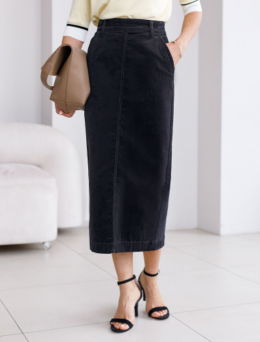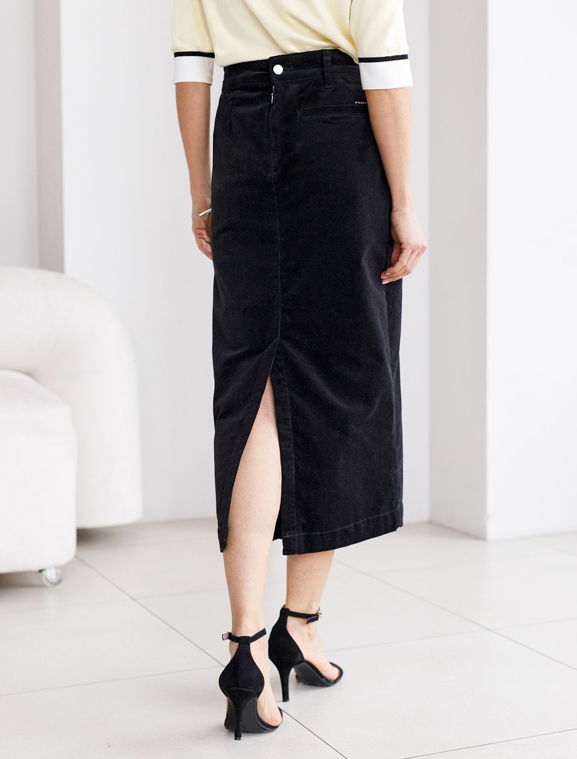 Юбка-карандаш выполнена из эластичного хлопкового микро-вельвета. Приятный на ощупь материал практически не мнется, поэтому изделие сохранит безупречный внешний в течении всего дня. Модель дополнена двумя отрезными боковыми и одним задним карманами. Застежка на потайную молнию сзади, со шлицей. Продуманный крой обеспечивают идеальную посадку по фигуре, а широкий пояс подчеркивает талию. черный