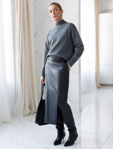 Идеальный выбор для дерзкого и женственного образа. Облегающий силуэт юбки-карандаш в черном цвете подчеркивает фигуру, а разрез сбоку чуть выше колена добавляет нотку соблазна и удобство при ходьбе. Мягкая обтачка пояса с изнаночной стороны обеспечивает комфорт. Качественная искусственная кожа выглядит дорого, сохраняя эластичность и износостойкость.