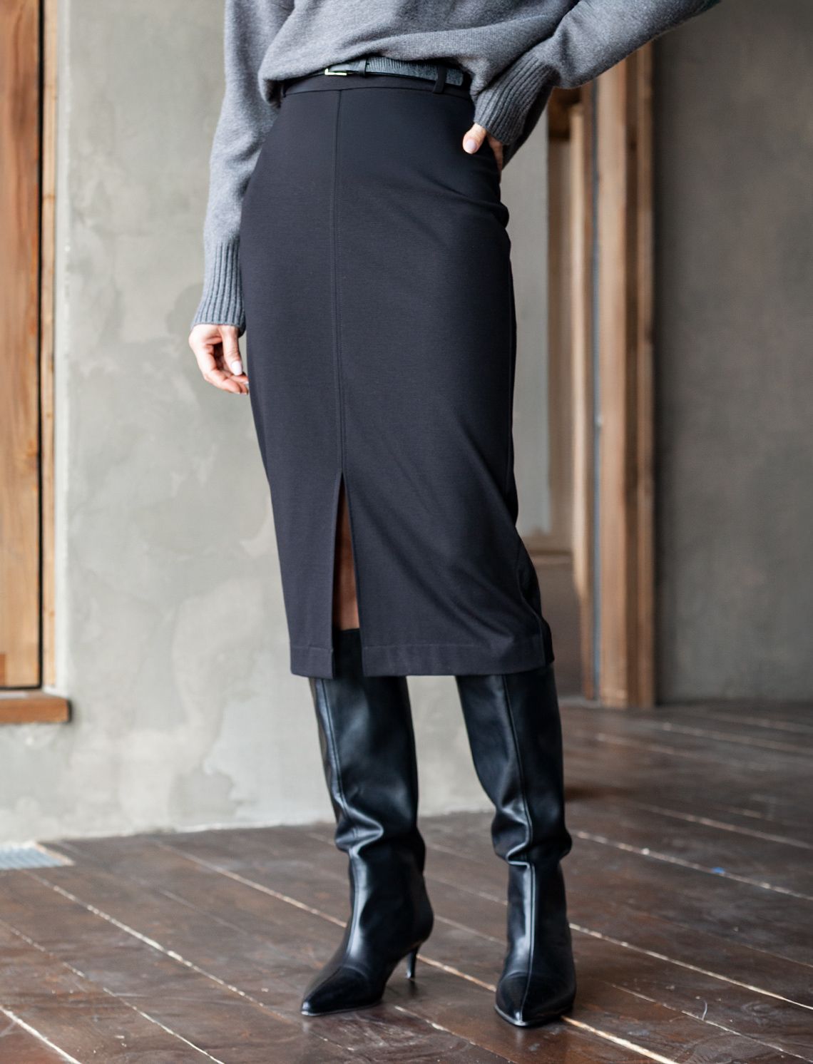 Юбка-карандаш выполнена из плотного джерси. Модель без подкладки дополнена разрезом спереди. Эластичный материал хорошо садится по фигуре обеспечивая абсолютный комфорт. Сзади застежка на потайную молнию. Выгодная инвестиция в базовый гардероб, подходит на все сезоны.