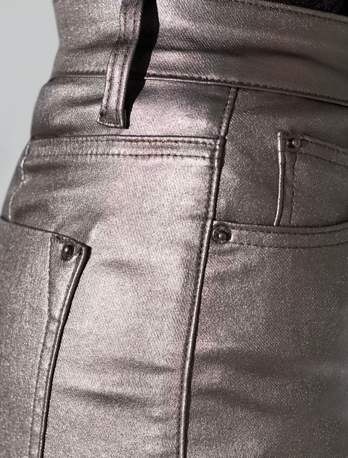 Юбка карандаш металлик средней длины с разрезом из эластичного денима