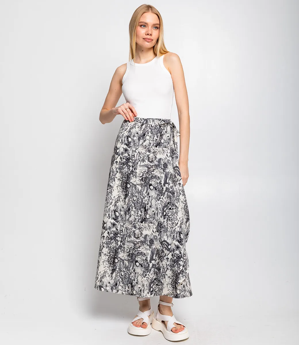Юбка – это стильный элемент гардероба, который подчеркивает женственность и легкость каждой женщины. Юбка макси с А-силуэтом, который постепенно расширяется от линии талии вниз. Это позволяет юбке удобно облегать фигуру и создавать воздушный, свободный силуэт. Юбка украшена нежным цветочным узором в пастельных тонах, что придаёт изделию романтичный и женственный вид. Использованный для пошива материал - 65% полиэстер и 35% хлопок - обеспечивает легкость и воздухопроницаемость, что делает юбку прекрасным выбором на теплую погоду. Она может стать основой как повседневного, так и более нарядного образа, прекрасно сочетаясь с различными блузами или топами. Обратите внимание на универсальность этой модели, которая легко впишется в любой гардероб. Чтобы помочь вашим клиентам выбрать правильный размер, мы подготовили таблицу на сайте, где можно быстро произвести необходимые замеры и удостовериться в своем выборе. Установленная нами цена является доступной для качественного изделия такого класса. Рост модели 173, 84-58-89.