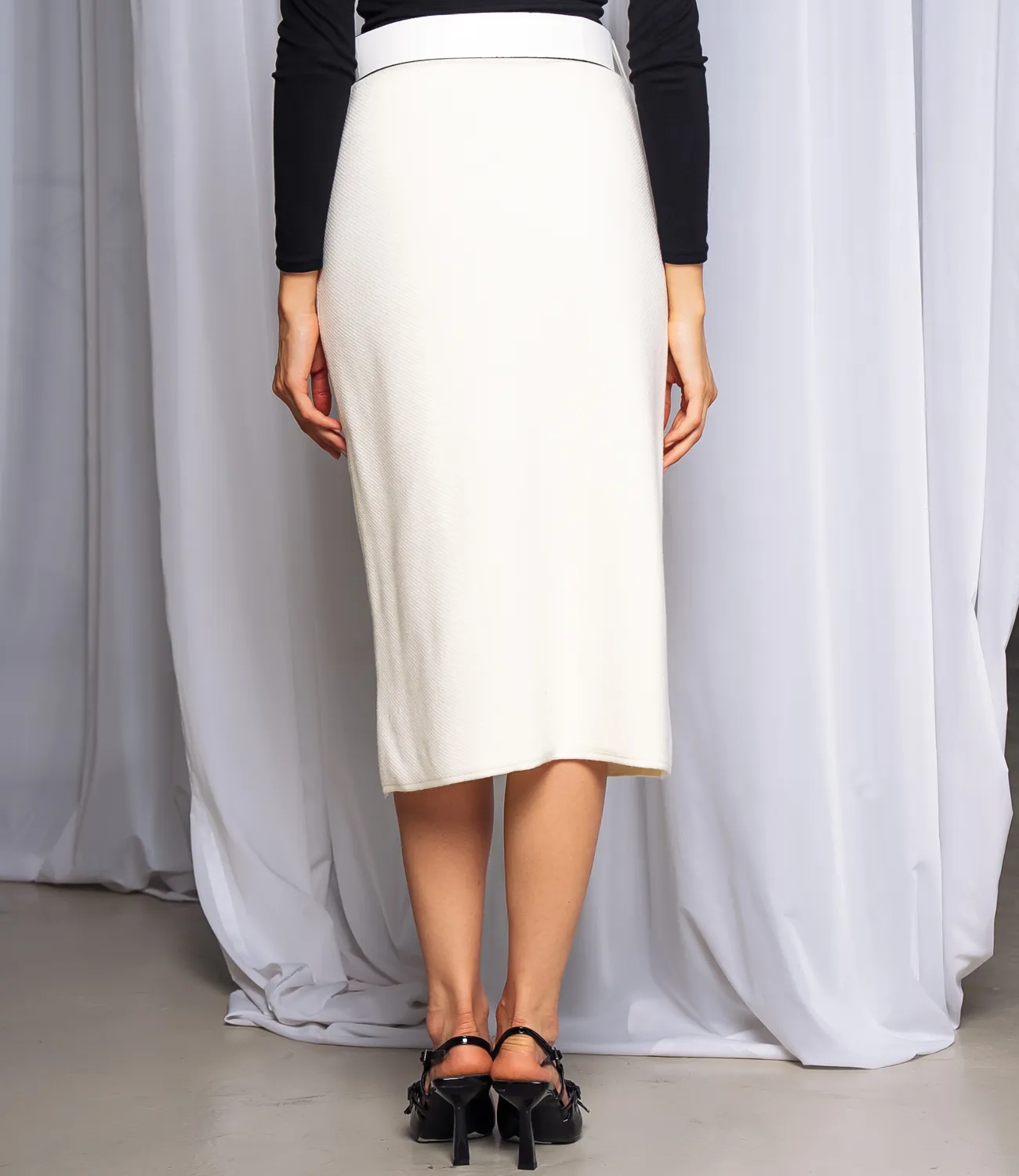 Трикотажная юбка-карандаш с высокой талией универсальна для гардероба любого сезона, она сочетается с блузкой, осенним свитером и зимней курткой. Также хорошо смотрится с обувью на каблуке и на плоской подошве. Рост модели: 168, параметры: 85-63-92.