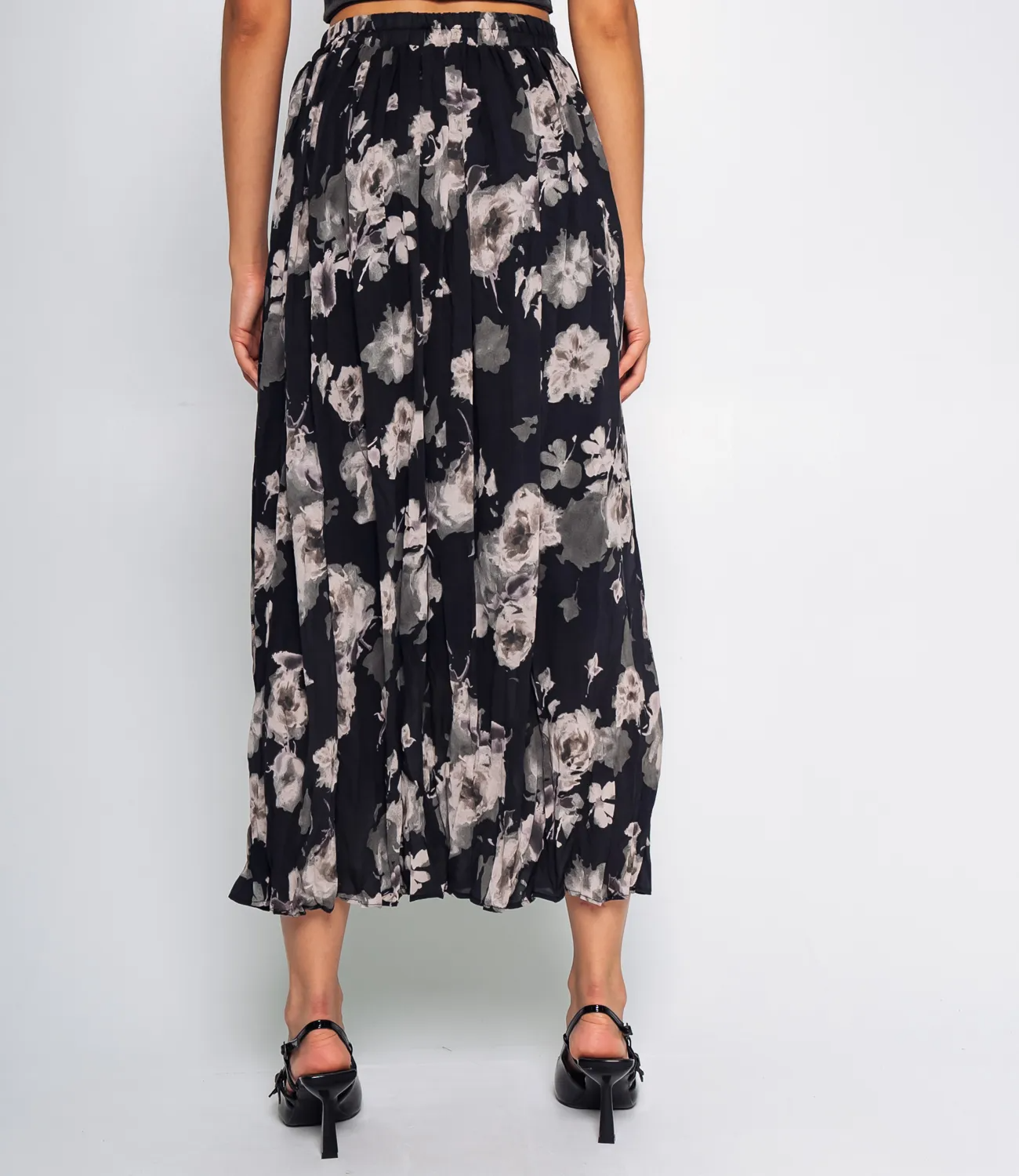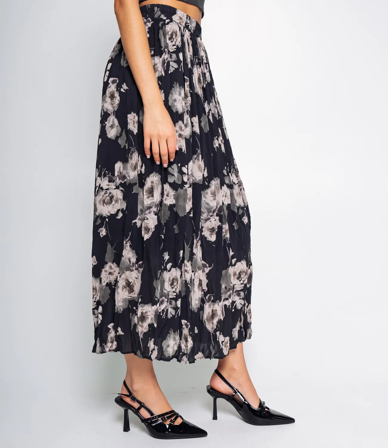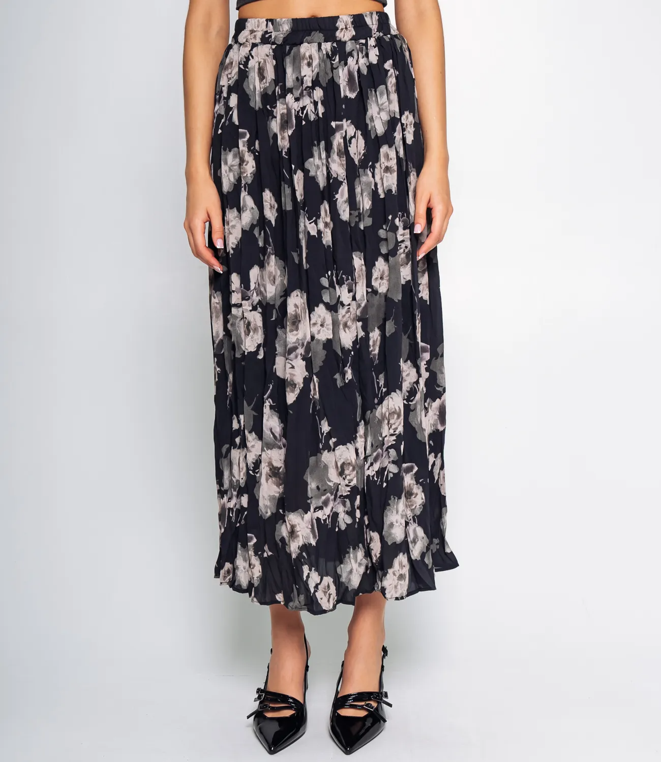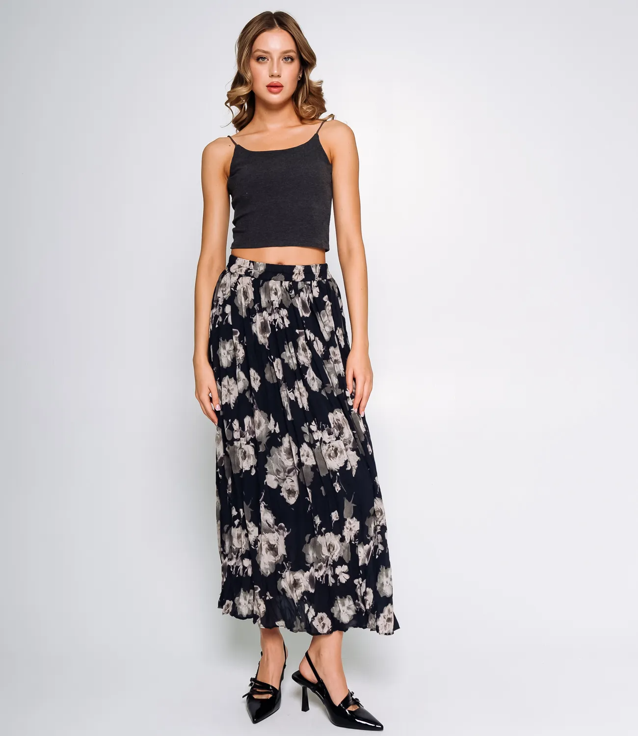 Юбка выполнена в минималистичном стиле с акцентом на комфорт и элегантность. Она имеет высокую талию, которая подчеркивается поясом, что позволяет регулировать посадку по фигуре. Длина юбки достигает середины икры, создавая универсальный и женственный силуэт. Юбка имеет трендовый цветочный принт. Ткань юбки состоит из 100% полиэстера, что обеспечивает хорошую износостойкость, легкость в уходе и приятные тактильные ощущения. Материал слегка тянется, что добавляет удобства при носке.Минималистичный и лаконичный стиль делает эту юбку универсальным элементом гардероба, подходящим как для деловых, так и для повседневных образов. Материал полиэстер обеспечивает хорошую износостойкость, легкий уход и сохранение формы при длительной носке. Рост модели 174 см., 80-58-88.