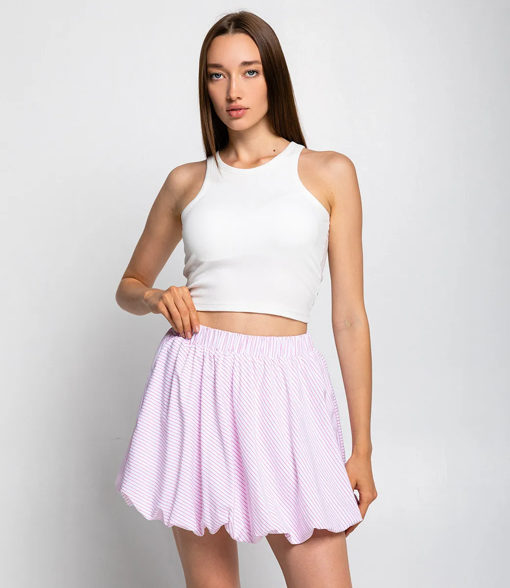 Юбка-баллон — это стильный элемент гардероба, который непременно станет хитом в вашем магазине. Эта короткая юбка с объемным фасоном и эффектом пышности, благодаря сборкам по линии талии, подчеркивает женственность и актуальны в современных модных трендах. Эластичный пояс обеспечивает удобную и комфортную посадку, что делает юбку идеальным выбором как для повседневного ношения, так и для особых мероприятий. Поскольку юбка выполнена из 100% полиэстера, её легкий и мягкий материал способствуют максимальному комфорту, а также позволяют коже дышать в жаркую погоду. Дизайн с узором из тонких диагональных полосок привносит в образ игривость и романтичность, добавляя нотку оригинальности и свежести в любые ансамбли. Не забывайте обратить внимание на доступные цвета, которые полностью соответствуют фотографиям на сайте — это позволяет вашим покупательницам легко выбрать идеальный вариант для себя. Мы также предоставили на странице таблицу размеров, чтобы ваши клиенты могли легко и быстро подобрать подходящий размер, не беспокоясь о том, что что-то может не подойти. Предложенная цена является доступной и привлекательной для оптовых покупателей, что даст вам возможность расширить ассортимент и привлечь больше клиентов. Позвольте вашим покупательницам выразить свою индивидуальность и создавать стильные образы с этой замечательной юбкой-баллон! Не упустите шанс предложить своим клиентам что-то действительно уникальное и модное, чтобы они всегда чувствовали себя уверенно и привлекательно! Рост модели 168 см., 85-63-92.
