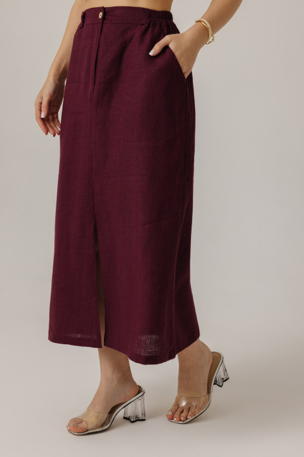 Юбка льняная 10-124 вишня2