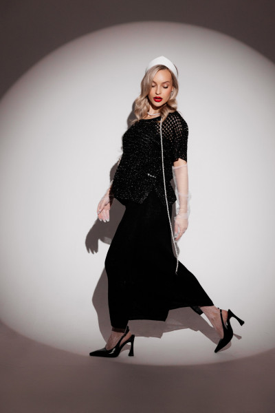 Пояс на резинке. По бокам разрезы 13-17 см.