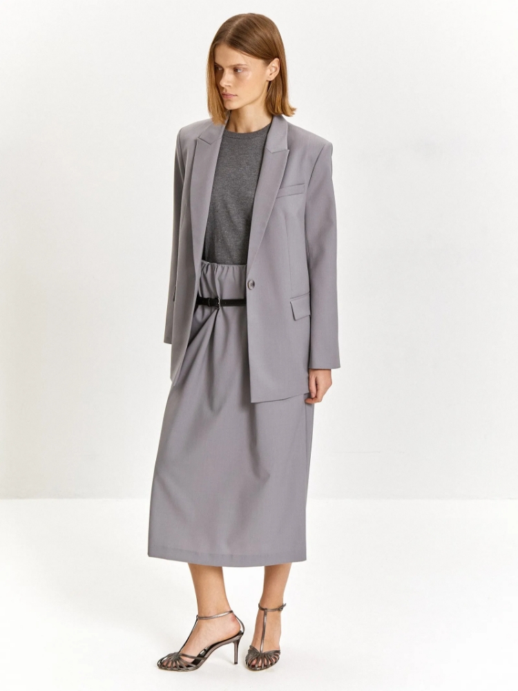 Юбка миди на резинке из костюмной шерсти , 74% полиэстер, 24% шерсть, 2% эластан ,