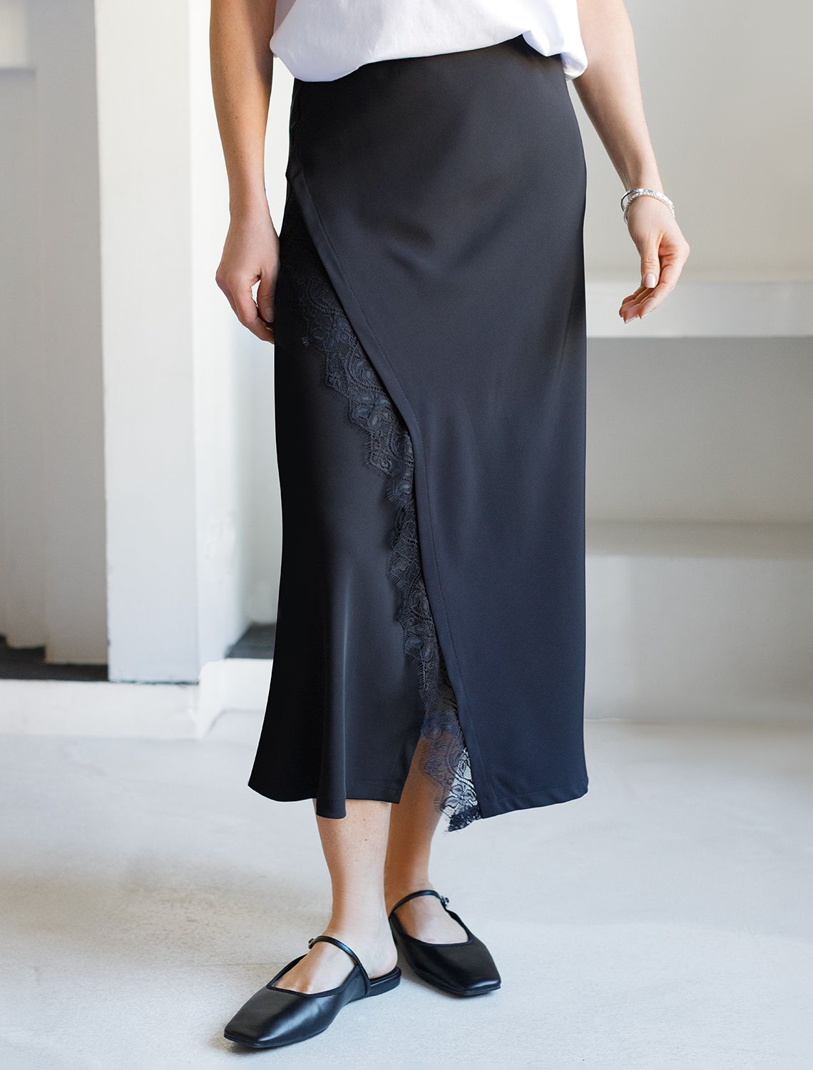 Юбка миди на запАх черного цвета выполнена из креп-шифона, который придает изделию легкость и воздушность. Эффектная модель украшена изящным кружевом, добавляющим женственности и элегантности образу, ткань отличается мягкостью, приятна к телу. Шикарное сочетание премиальных материалов делает юбку универсальной как для повседневной носки, так и для особых случаев. Благодаря продуманному крою и удобной посадке, она подходит и для больших размеров, обеспечивая комфорт в течение всего времени носки. Фасон юбки на запАх выгодно подчеркивает талию, создавая стильный акцент, визуально корректирует объем бедер и вытягивает силуэт.