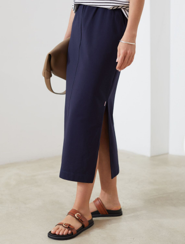 Юбка А-силуэта на запАх серо-синего цвета выполнена из легкого хлопкового поплина плотностью 106 Г/м2. Свободная юбка сидит идеально, позволяя легко двигаться в течение дня. Такая модель подходит на маленький и высокий рост, а так же на любую фигуру, позволяя подчеркнуть достоинства и скрыть возможные недостатки. Средняя длина подчеркивает красоту ног и делает образ элегантным, универсальным для любого случая. Классическая юбка в тонкую полоску создает идеальный силуэт, визуально вытягивает и стройнит фигуру. Принт добавляет динамики и оригинальности даже самым лаконичным комплектам, делая этот предмет гардероба настоящим хитом сезона. Натуральный состав ткани обладает высокой воздухопроницаемостью, а также способностью поглощать и отдавать влагу. В повседневной юбке будет очень комфортно, благодаря правильной регуляции температуры тела. Стильная юбка отлично сочетается с монохромным верхом для вытягивания силуэта или контрастными цветами. С этой красивой юбкой можно создавать эффектные наряды как на выход, так и для ежедневных рабочих дел или простых прогулок.