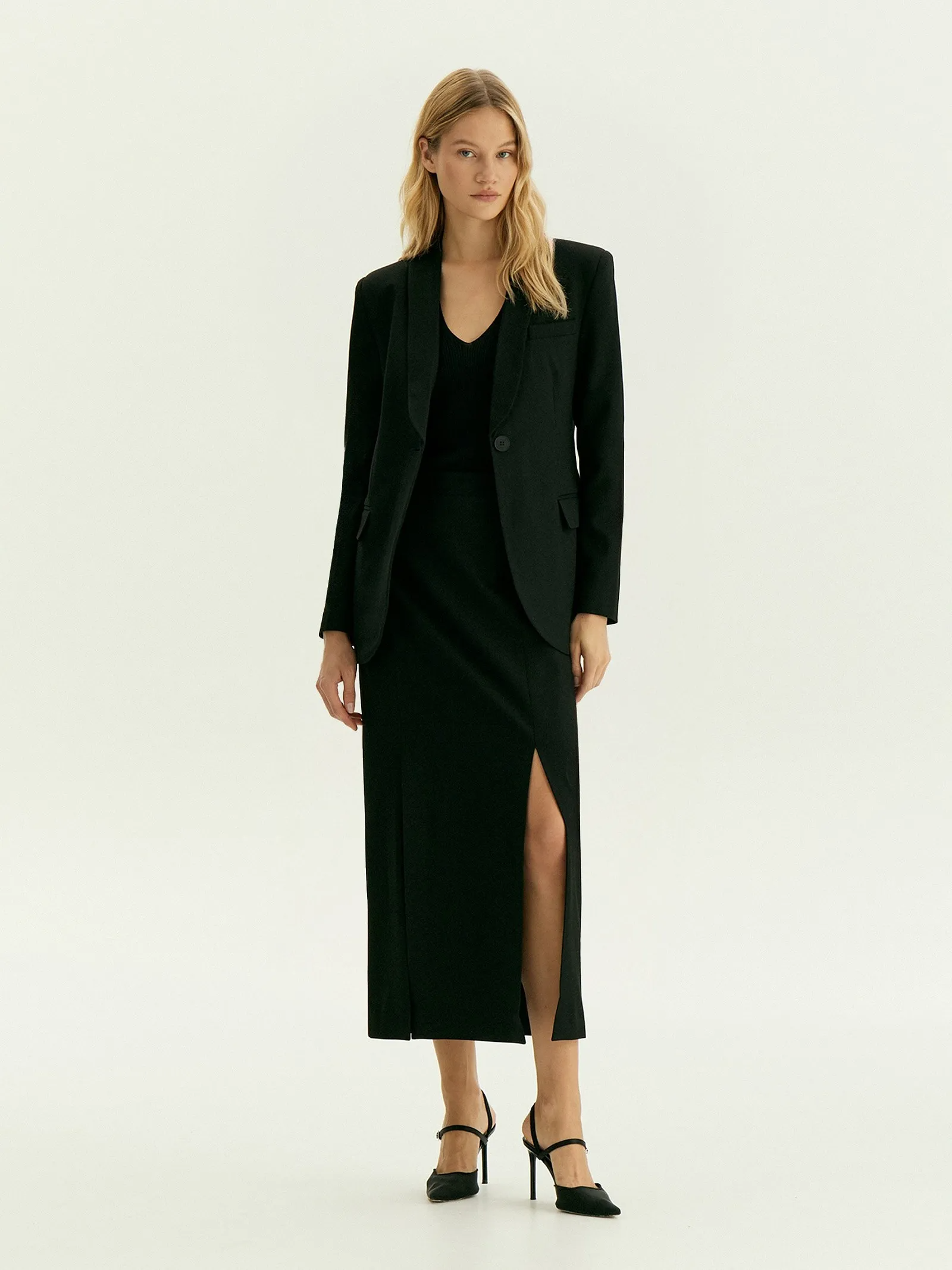 Юбка миди с глубокими разрезами сделает повседневные или выходные образы более трендовыми и дерзкими. Выполнена из приятной костюмной ткани, на подкладке с вискозой. Юбка может стать основой многофункциональной капсулы с жакетом, брюками и ещё одной юбкой monk.