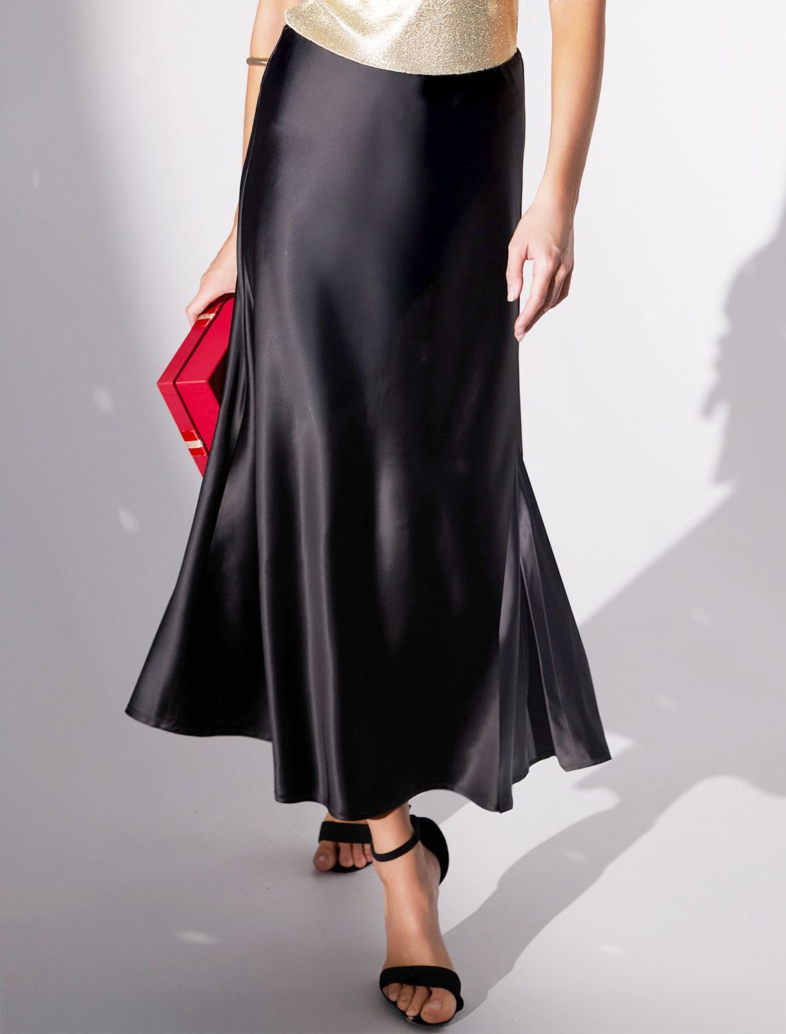 Юбка миди черного цвета с разрезом из струящегося плотного сатина — находка для модниц, ценящих элегантную классику и современный стиль. Модный крой длинной юбки подчеркивает фигуру, а мягкий эластичный пояс обеспечивает дополнительный комфорт на протяжении всего дня. Благодаря продуманному крою, юбка хорошо сидит на фигуре и подчеркивает силуэт без лишних деталей, подойдет для обладательниц пышных форм и девушек маленьких размеров. Шелковистая текстура материала приятно ощущается на коже, не просвечивает и сохраняет форму даже после длительной носки. Гладкая поверхность добавляет благородного блеска, делая образ неповторимым и шикарным в любой ситуации. Струящийся плотный сатин отличается устойчивостью к сминанию: юбка не мнется, что позволяет выглядеть безупречно на работе, встрече или прогулке. Атласная юбка придает образу элегантный и благородный вид, а разрез добавляет легкую динамичность и создает утонченный акцент на линии ног, сохраняя при этом сдержанную женственность. Юбка визуально вытягивает силуэт, делая походку грациозной и легкой.
