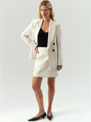 Чёрная мини-юбка почти наполовину состоит из шерсти и выполнена на подкладке с вискозой: комфортно и практично. Модель A-силуэта со средней посадкой — универсальная вещь в гардеробе. К ней хорошо подходят лаконичные топы, блузы и рубашки любых фасонов. Лучшим дополнением к юбке будут жакет и топ из комплекта