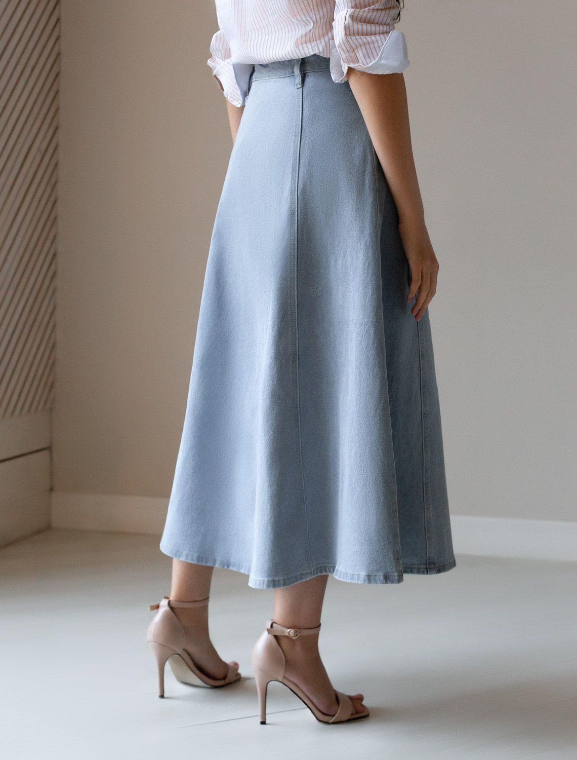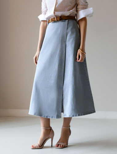Юбка на запАх из эластичного денима D56.112 светло-голубой