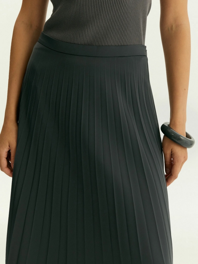 Юбка в цвете графита для стильных образов к любому случаю. Модель высокой посадки в длине миди элегантна и универсальна. Крупная плиссировка сохраняет актуальность в этом сезоне. Сочетать юбку можно с базовыми рубашками, нарядными блузами. Отличным выбором будут классические блузы из шелка