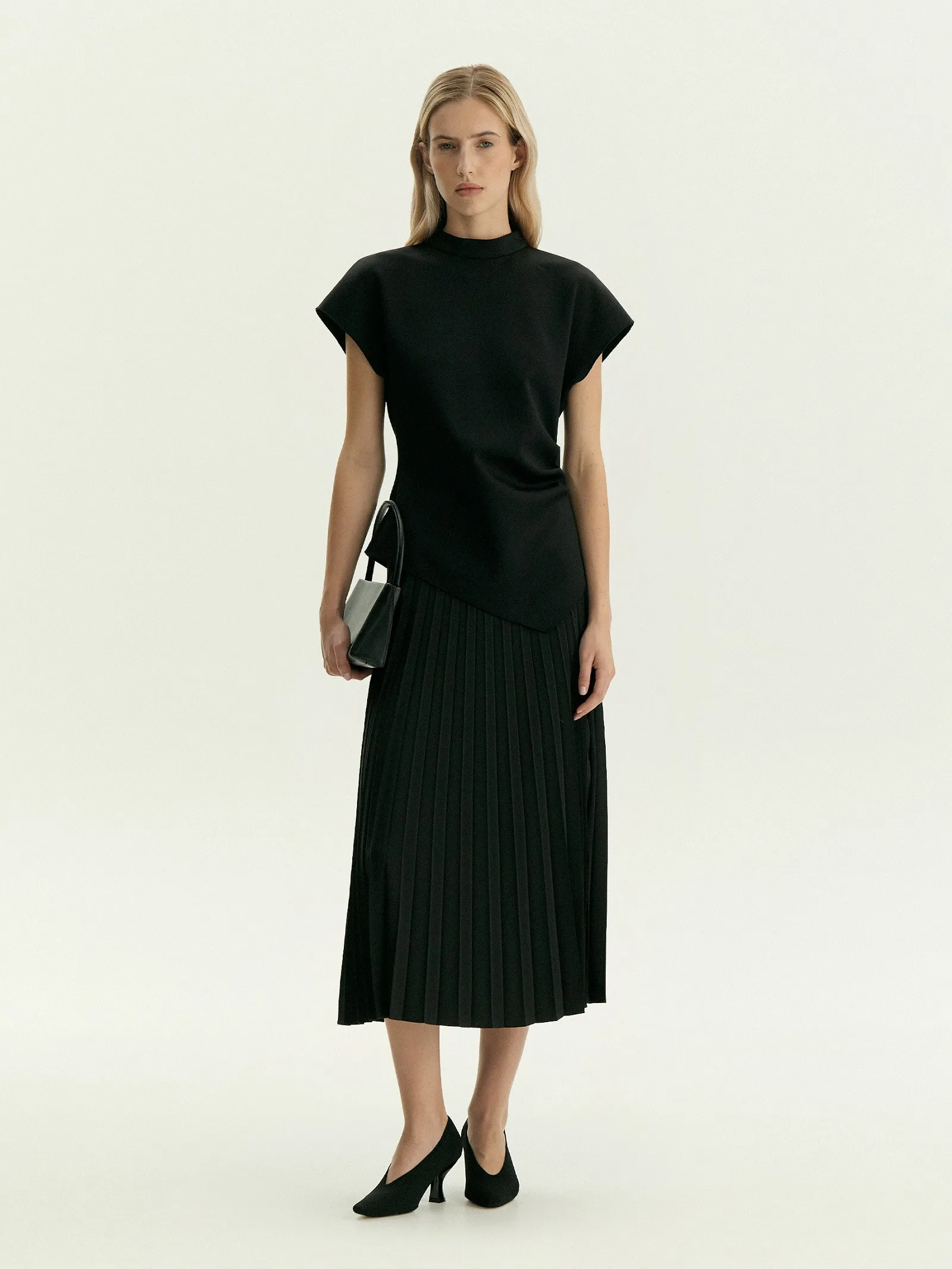 Юбка в чёрном цвете для стильных образов к любому случаю. Модель высокой посадки в длине миди элегантна и универсальна. Крупная плиссировка сохраняет актуальность в этом сезоне. Сочетать юбку можно с базовыми рубашками, нарядными блузами. Отличным выбором будут классические блузы из шелка.