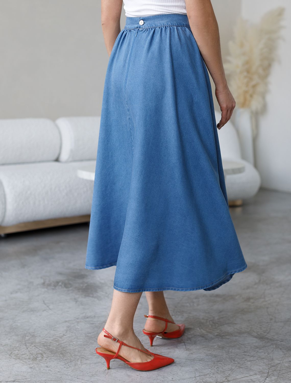 Юбка полусолнце из лиоцелла под деним D56.116 синий