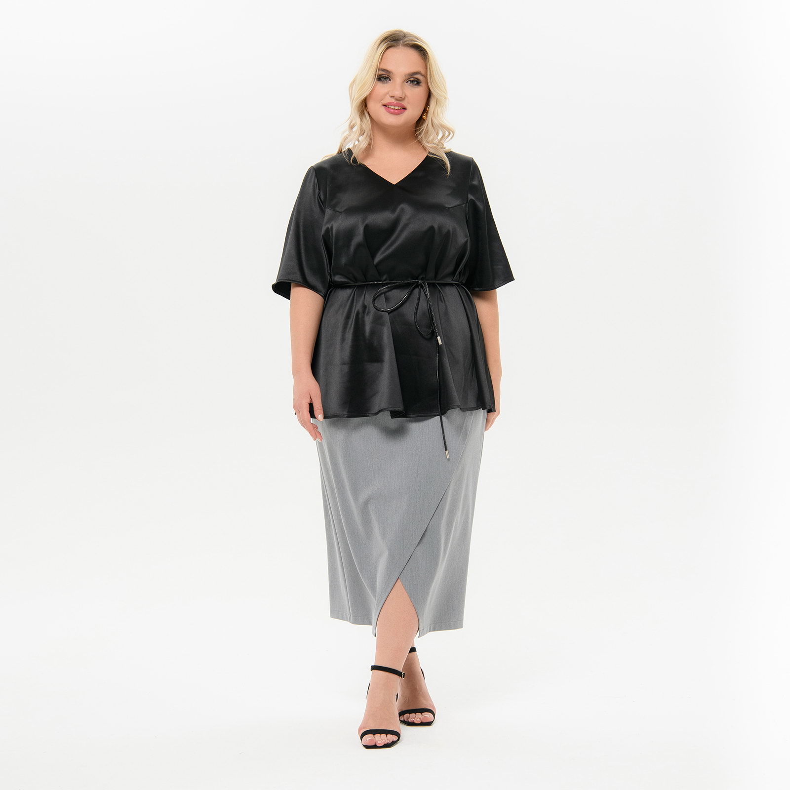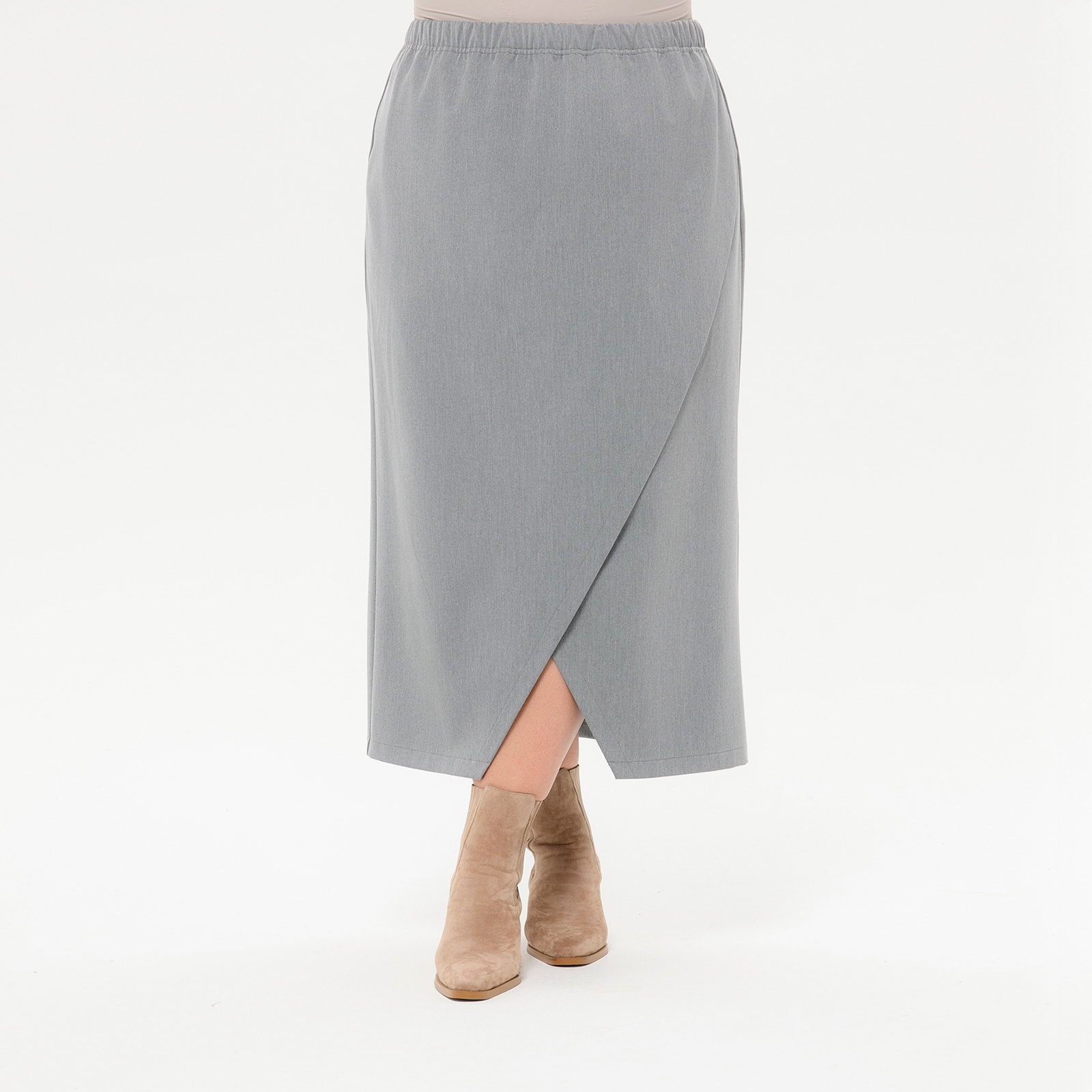 Юбка прямая, с запАхом, из костюмной ткани, цвет платиново-серый *