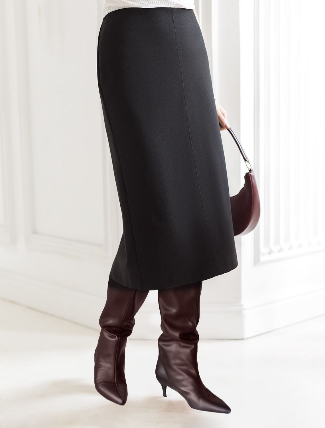Юбка прямого кроя выполнена из плотного формоустойчивого джерси - плотность 450г/м2. Застежка на молнию и потайную пуговицу. Изделие дополнено высоким разрезом сзади и декоративным швом спереди. Изделие хорошо держит форму, отлично тянется и почти не мнется во время использования. Идеальный вариант в офис или в повседневный классический стиль.