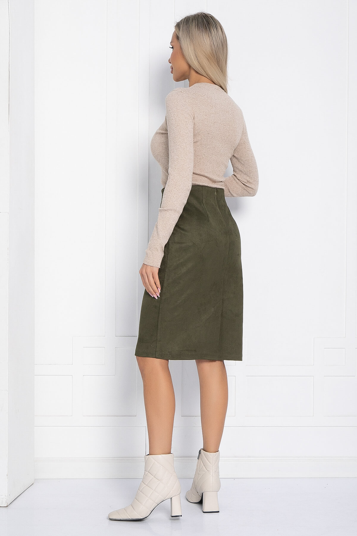 Элегантная юбка со средней посадкой, выполненная из экозамши, идеально подходит для создания стильных образов. Полуприлегающий силуэт подчеркивает фигуру, а разрез сзади добавляет нотку изысканности. Эта юбка отлично сочетается с водолазками, блузками, футболками, лонгсливами и джемперами, что делает её универсальным элементом вашего гардероба. Создайте неповторимый стиль для любого случая!