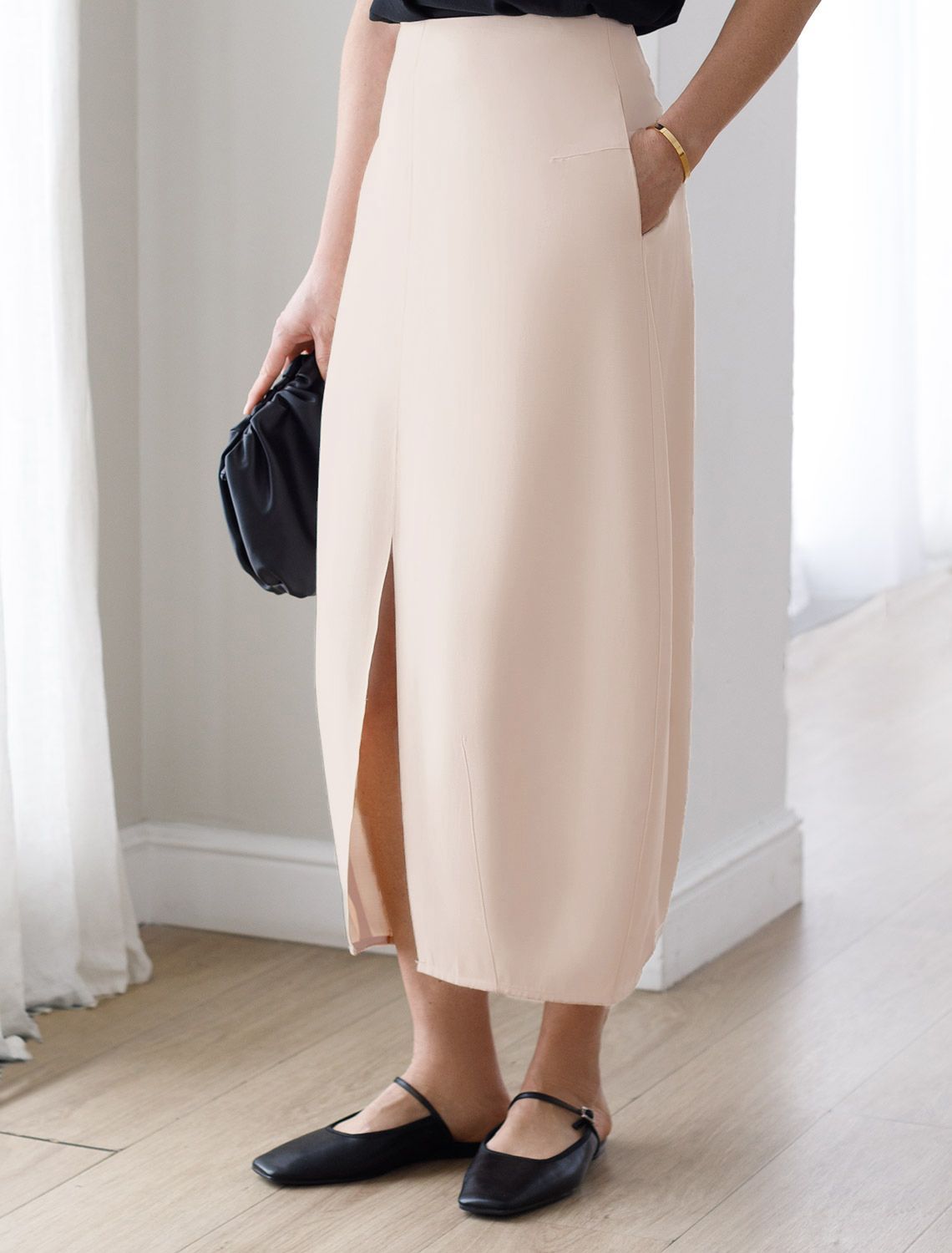 Юбка тюльпан с разрезом скроенная по косой из плотного лиоцелла D26.203 кокосово-молочный