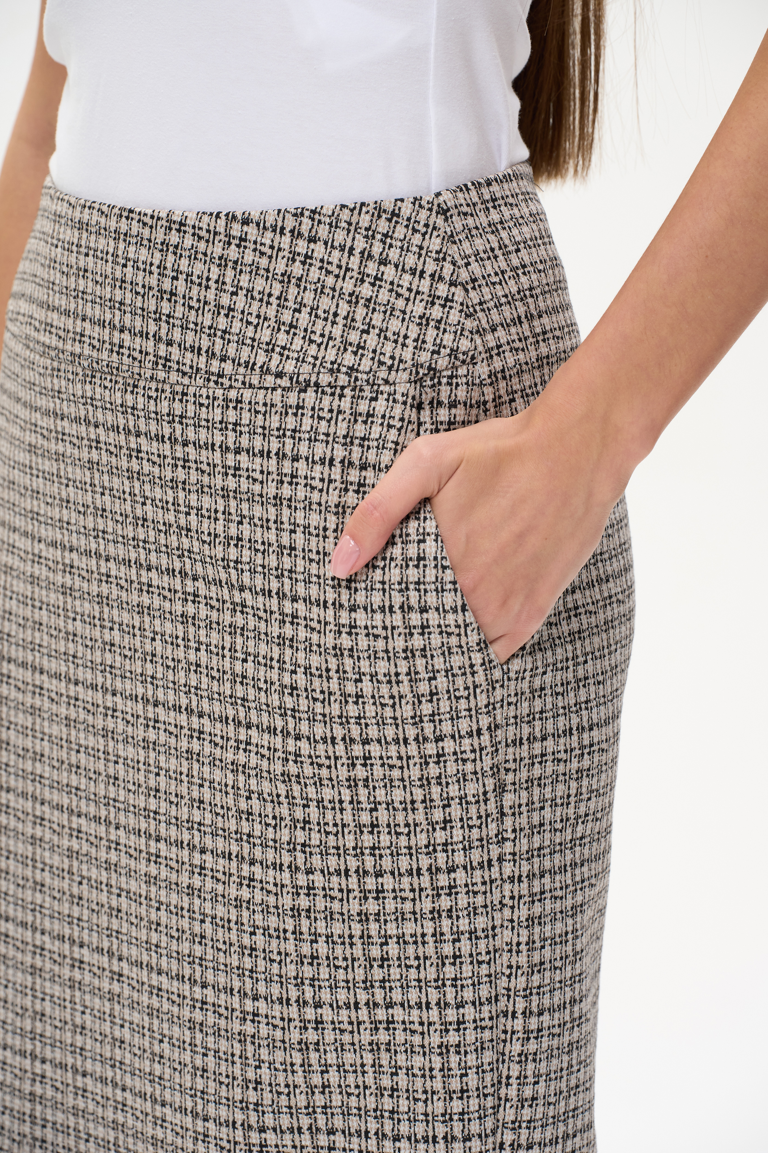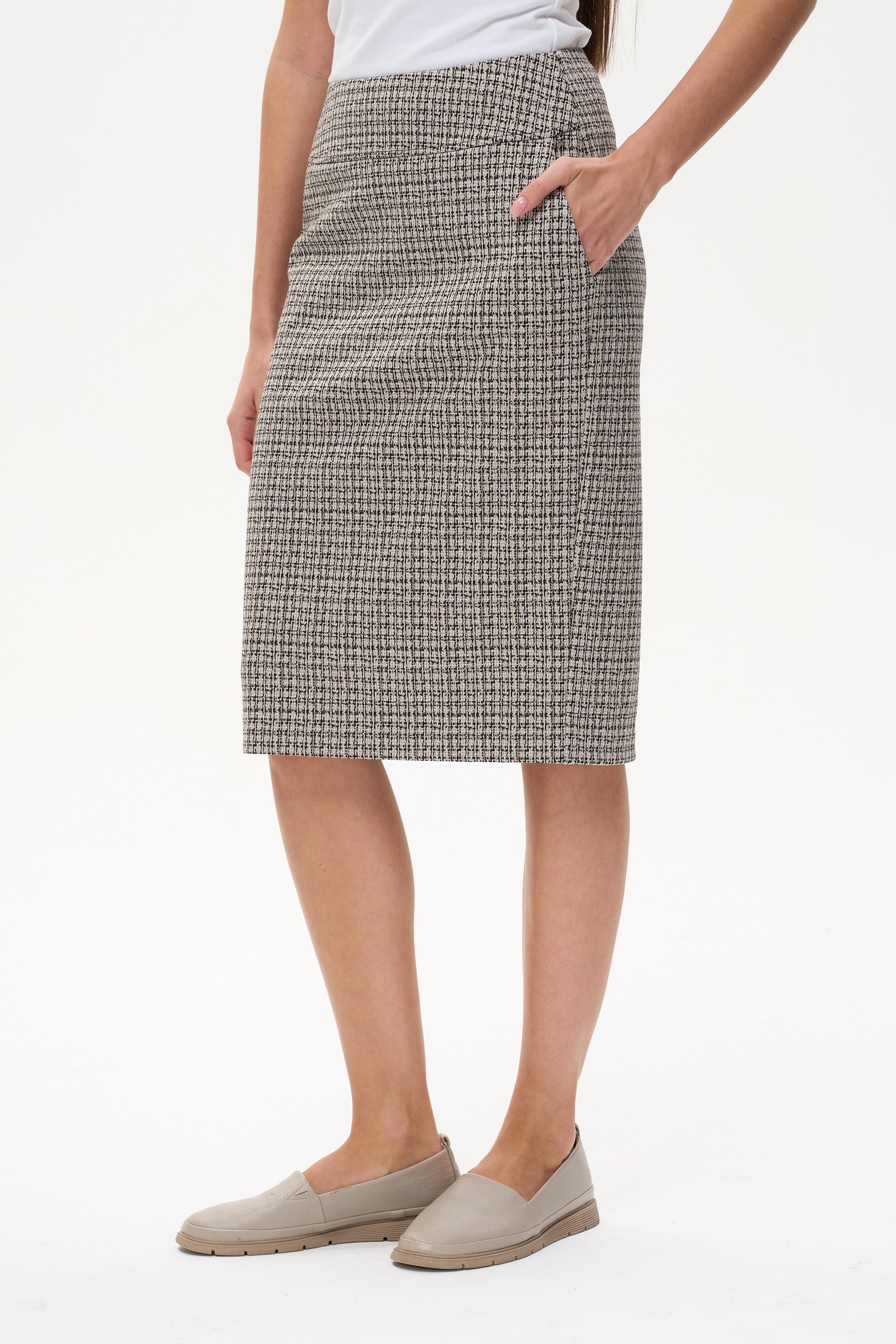 Классическая юбка со шлицей на подкладке, выполнена из вискозного жаккардового трикотажного полотна. Спереди кокетка и карманы. Застежка на потайную молнию. Длина изделия ниже колена. Рост модели на фото 178см