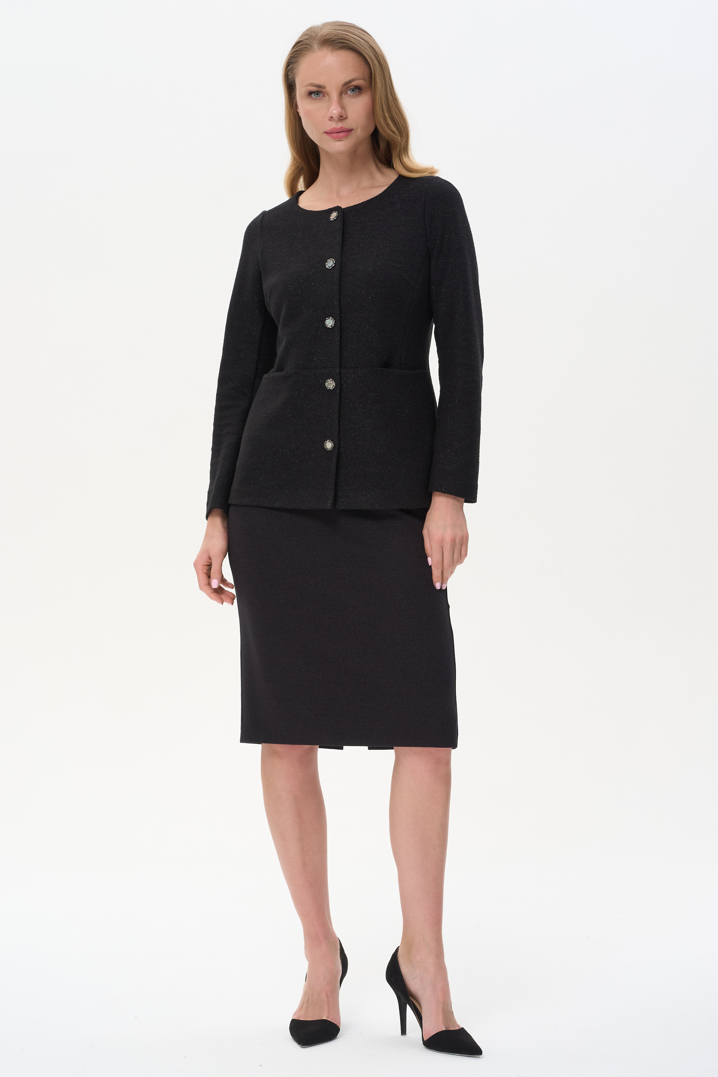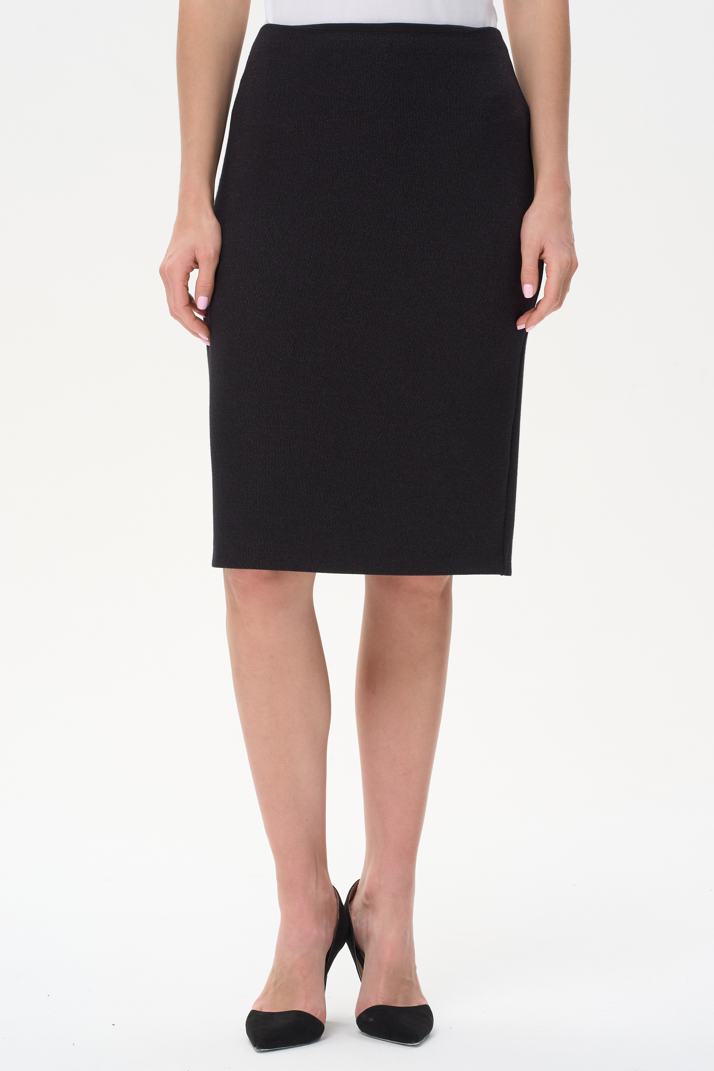 Прямая юбка длиной до колен с застёжкой на молнию, с красивой фактурной поверхностью и деликатным блеском. Элегантная модель для офиса и особых случаев.