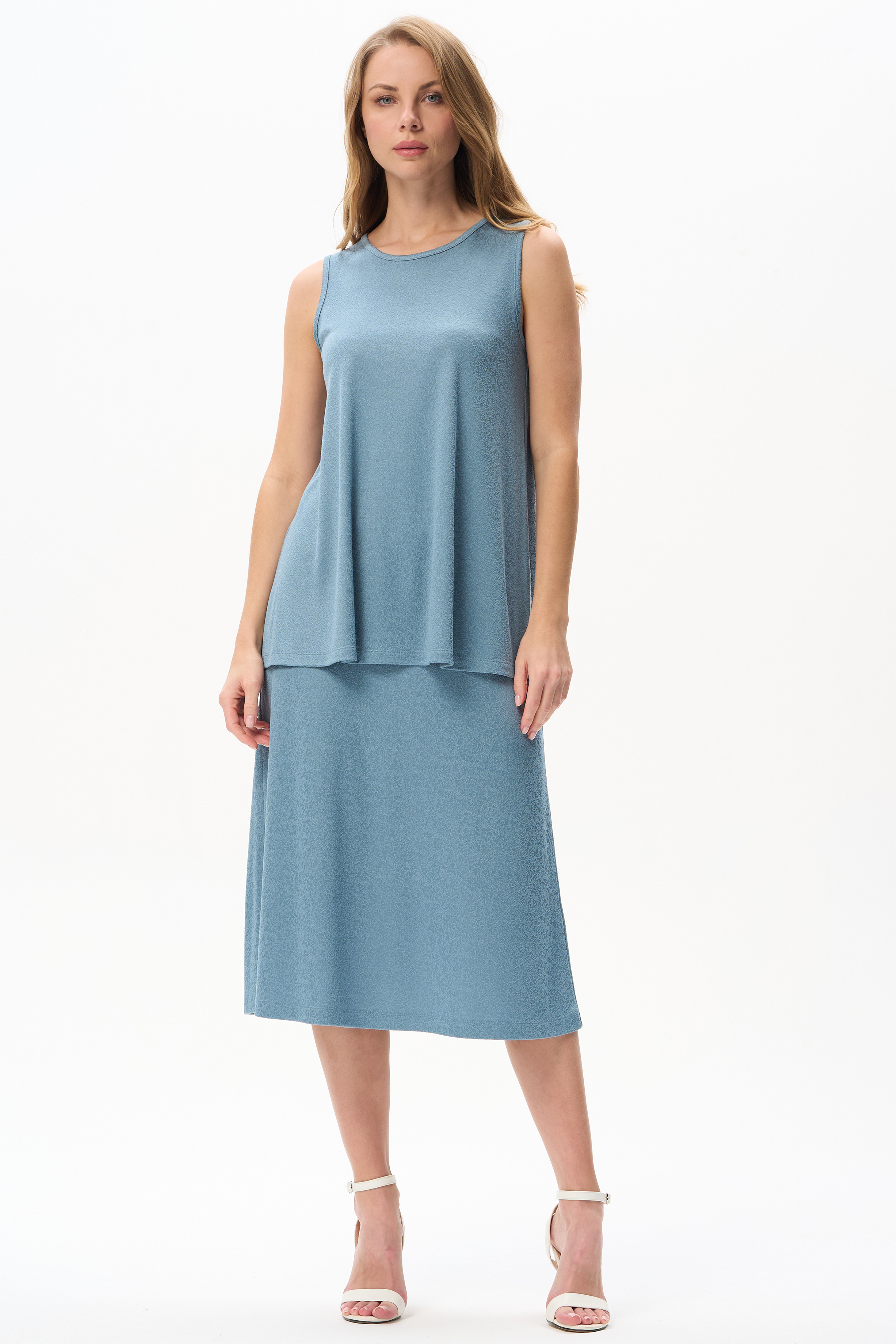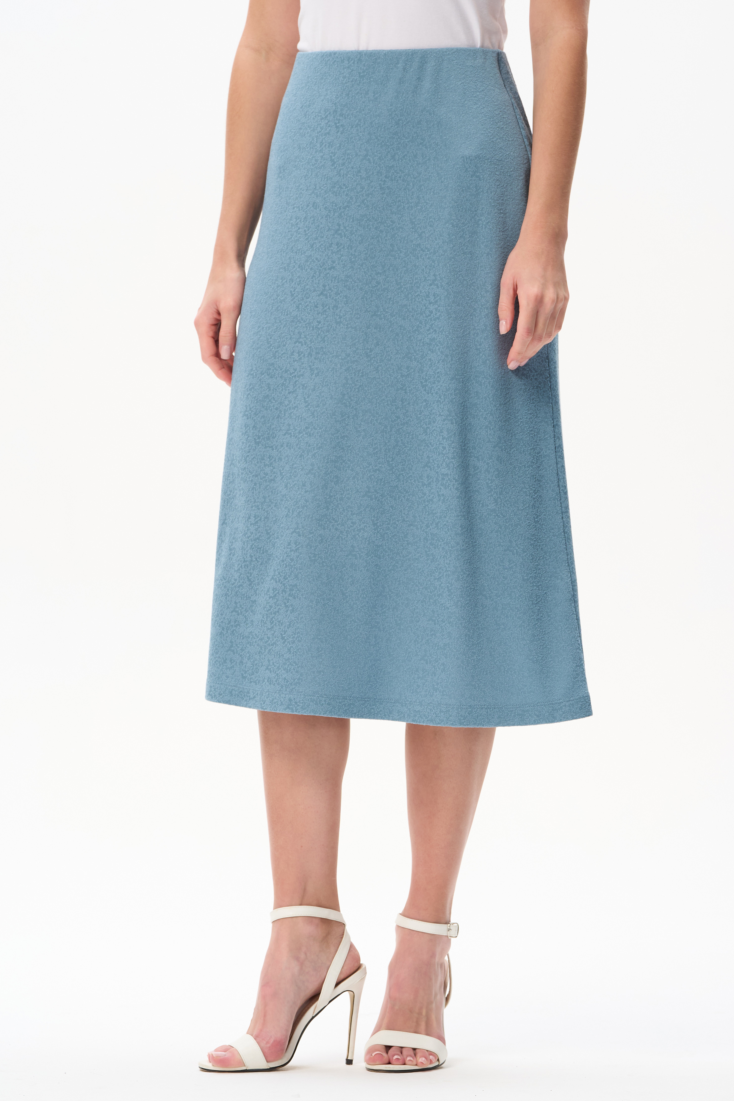80% вискоза, 15% полиэстер, 5% эластан Юбка из вискозного жаккарда 230 гр с красивой фактурой и благородным блеском. Модель силуэта трапеция, идеально сидит на фигуре благодаря удобной мягкой резинке на поясе. Резинка в цвет полотна "спрятана" внутрь изделия. Комфортная модель для летних образов. Рост модели 175 см