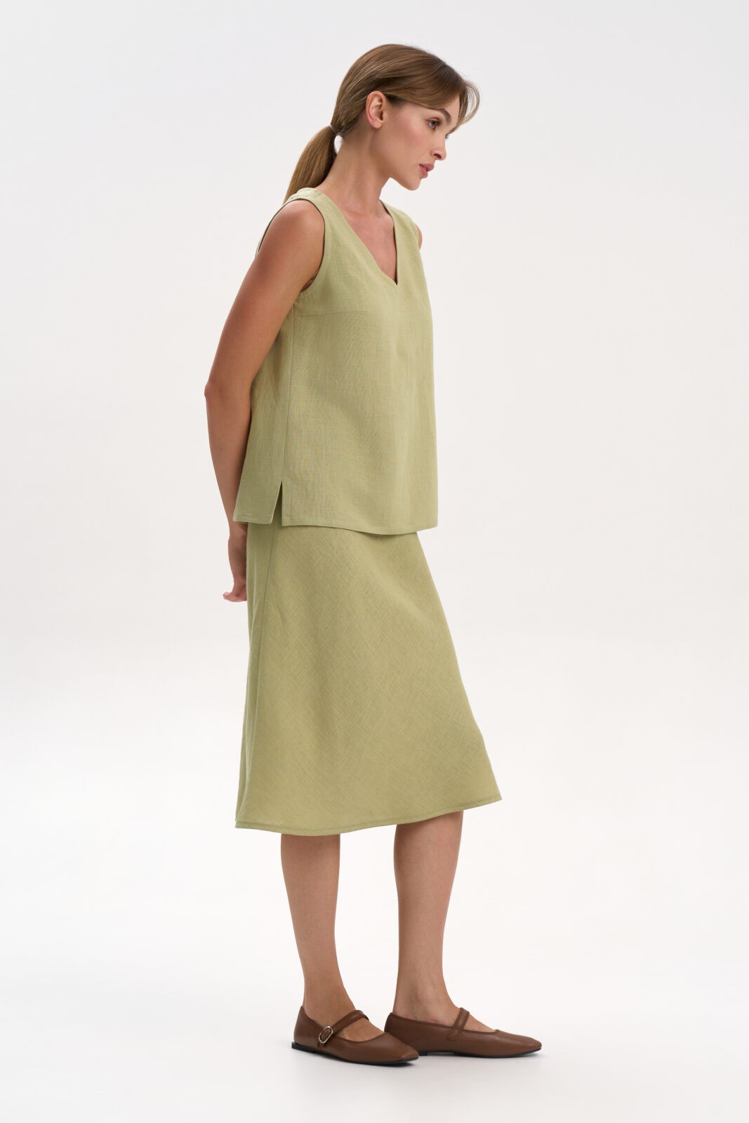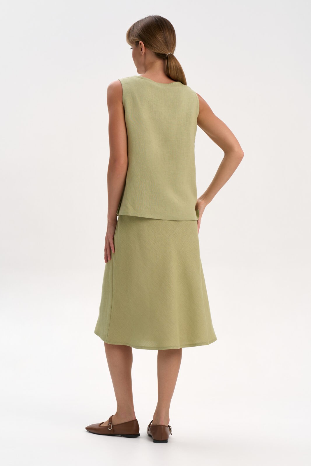 Юбка-миди коническая косого кроя. Пояс цельнокроеный с декоративной строчкой по резинке.