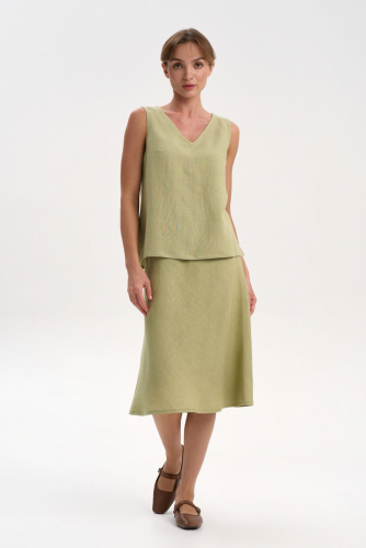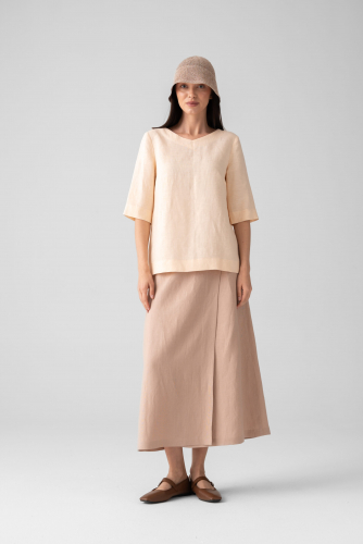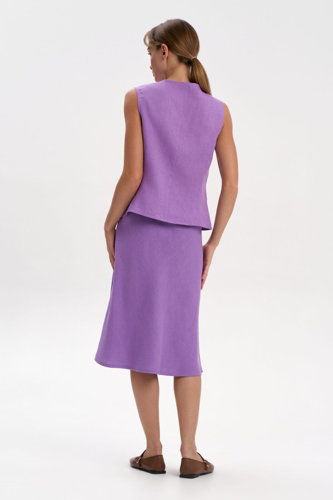 Юбка-миди коническая косого кроя. Пояс цельнокроеный с декоративной строчкой по резинке.