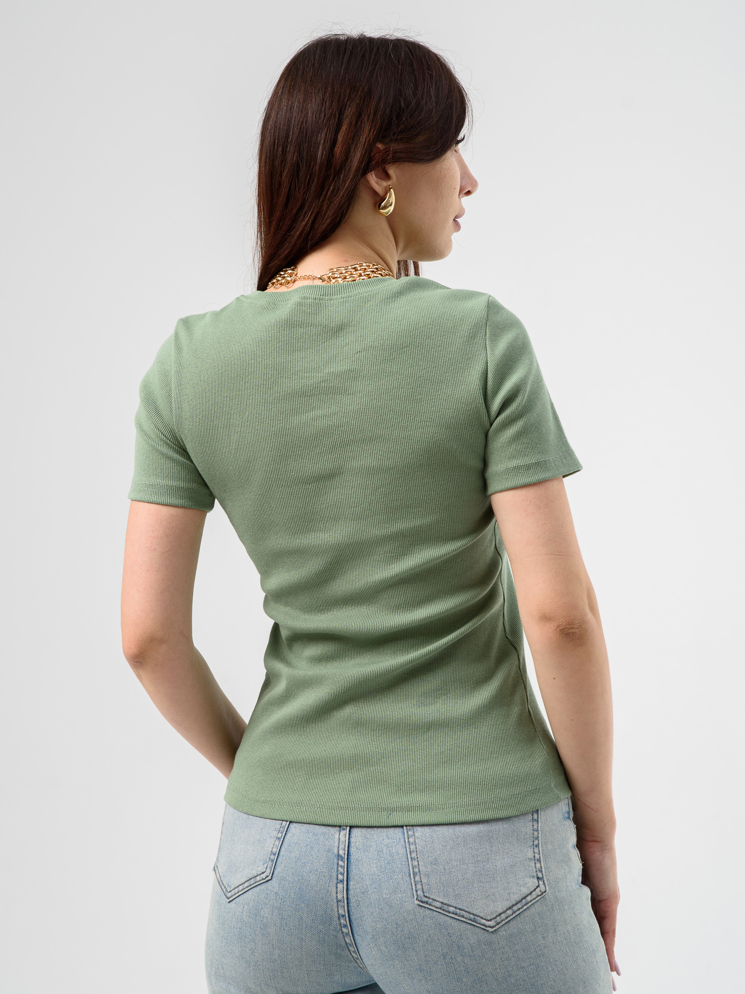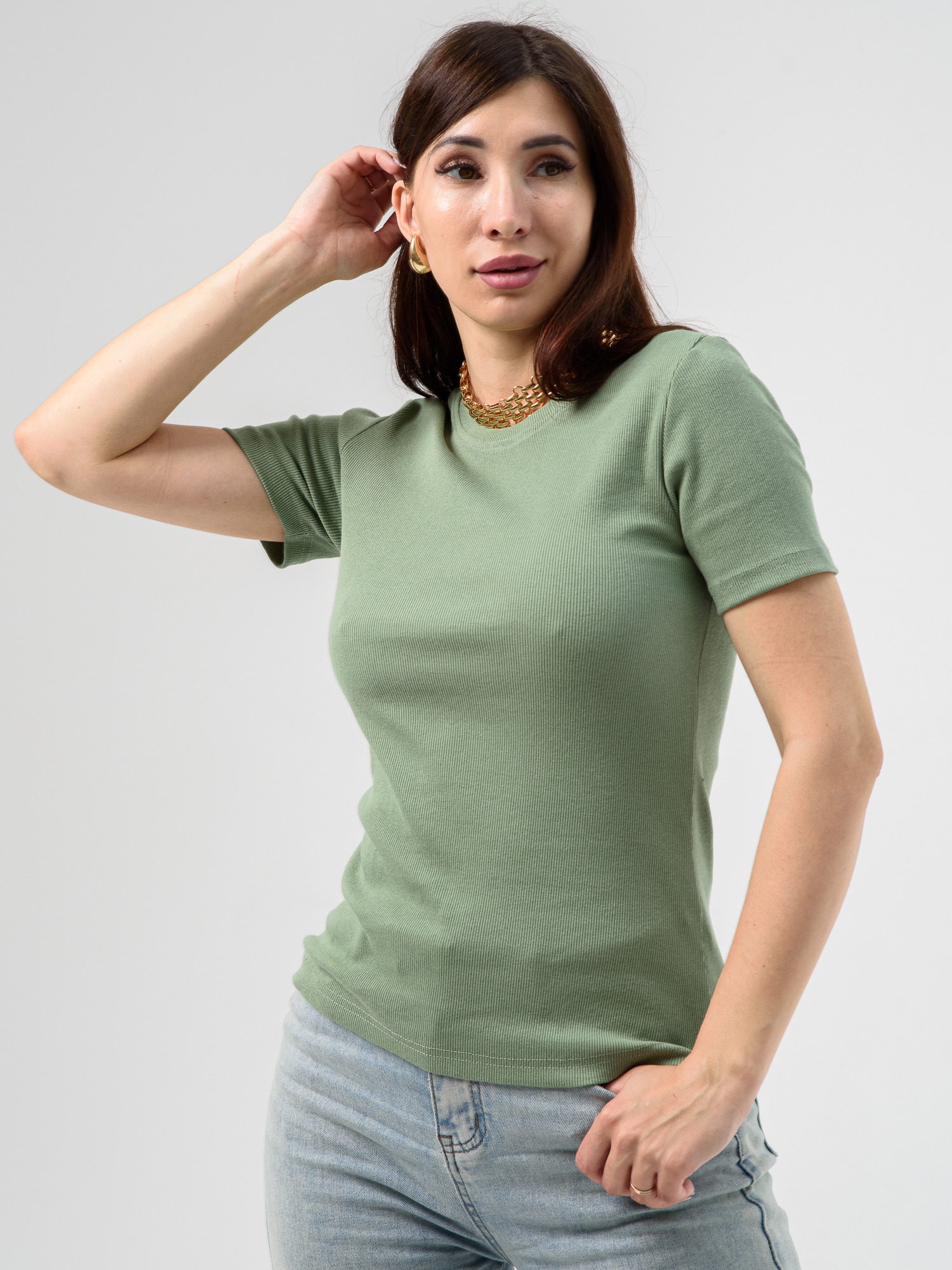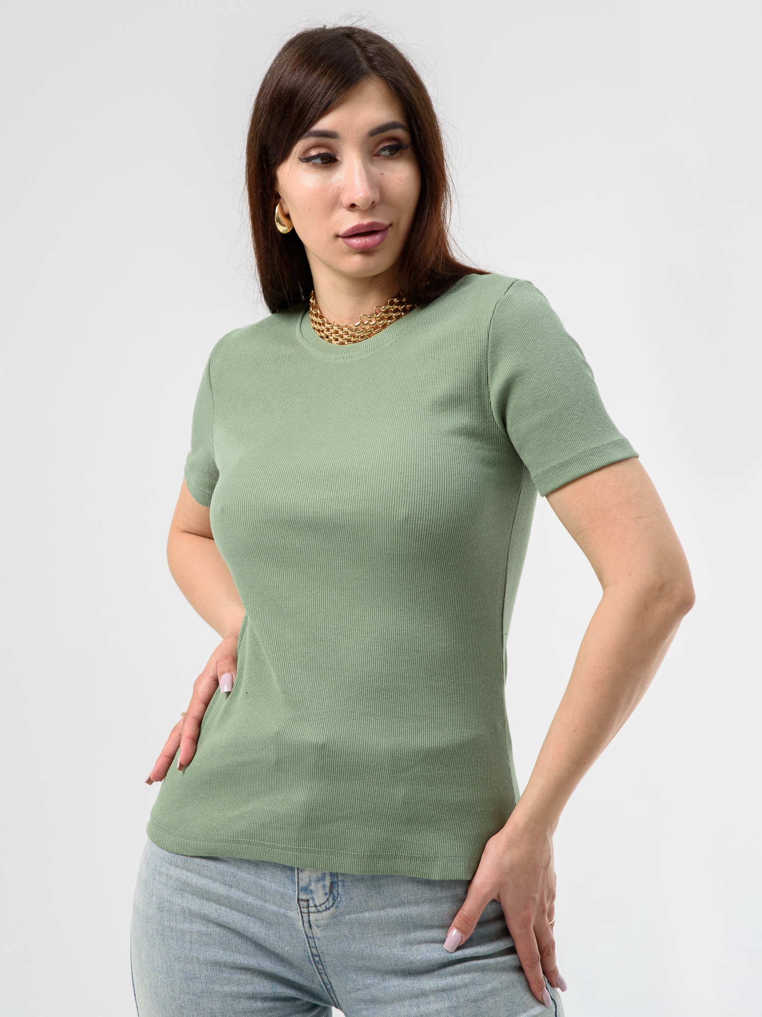 Футболка женская спортивного стиля, прилегающего силуэта, из трикотажного х/б полотна с выработкой «рубчик».