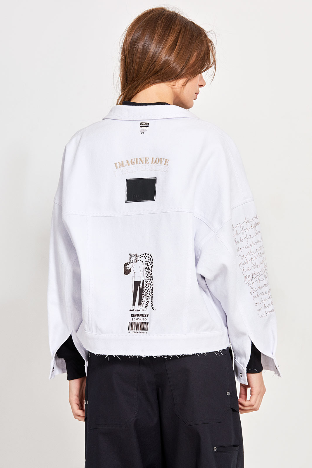 - на спинке вышивка, печать, кожаная аппликация с тиснением