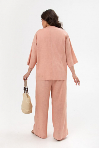 темно-коричневый Стильный жакет полуприлегающего силуэта из льняной ткани без подкладки, длиной за линию бедер.  V-образная горловина с отложным воротником. Модель с центральной застежкой на петли-пуговицы. Втачные длинные рукава. Прилегание по фигуре за счет вертикальных рельефов переда и спинки. По переду удобные прорезные карманы в рамку. Низ ровный. Жакет станет отличным дополнением как делового, так и повседневного гардероба.  Жакету гармоничный комплект составят брюки 1357