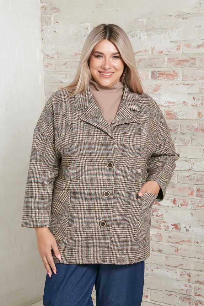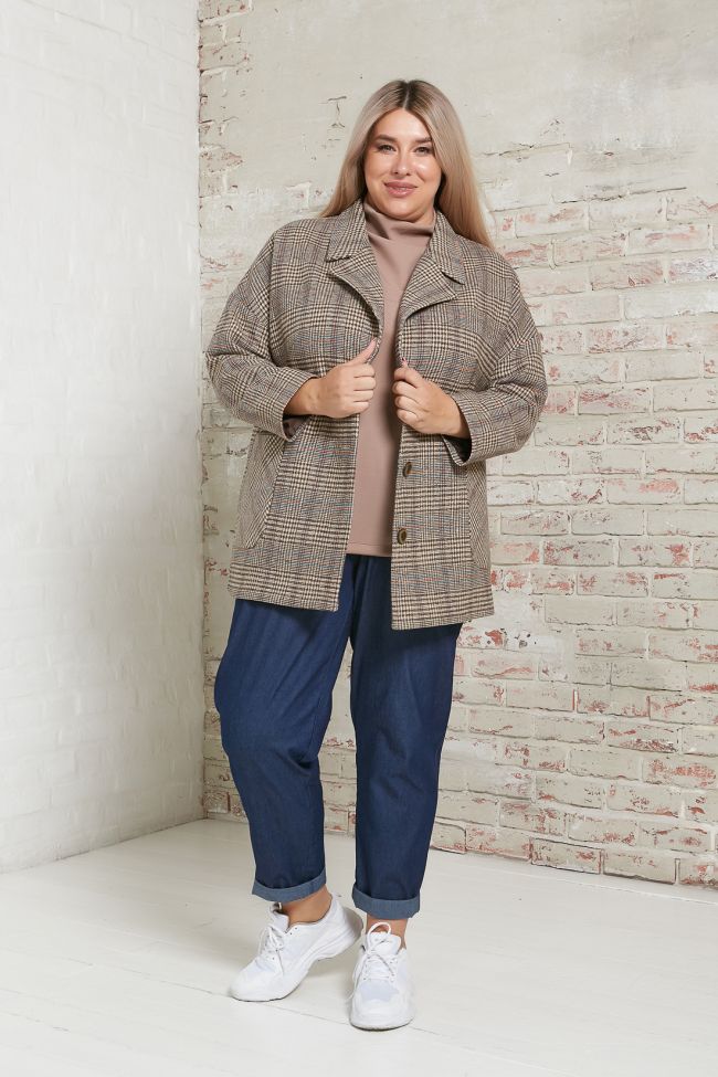 коричневый Жакет из теплой костюмной ткани на подкладе, длиной за линию бедер. Втачной длинный рукав и спущенная линия плеча. V-образный вырез горловины дополнен отложным воротником. Застежка центральная - на петли и пуговицы. Модель с накладными удобными карманами, скроенными по косой. Низ ровный. Жакет станет отличным дополнением как делового, так и повседневного гардероба.