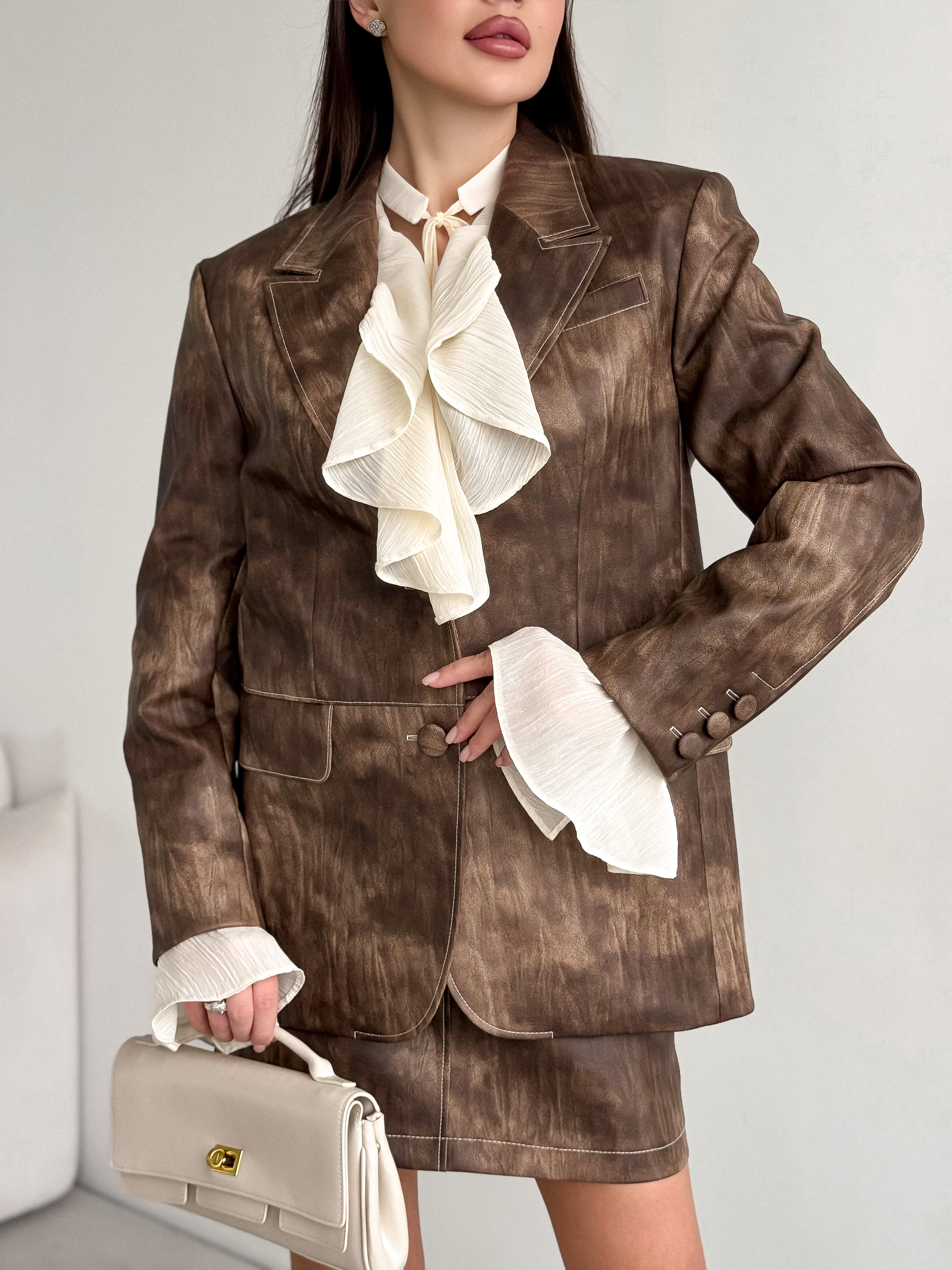 Жакет из премиальной мягкой экокожи с винтажным эффектом.