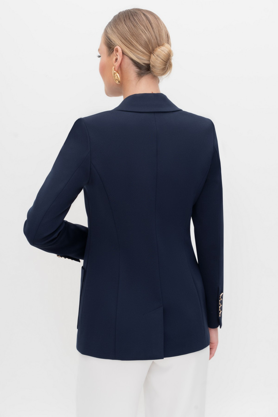 46:длина жакета по среднему шву спинки – 69,5 см (±2,0 см), ширина жакета на уровне глубины проймы – 48,0 см (±1,0 см), ширина жакета на уровне линии талии – 44,0 см (±1,0 см), ширина жакета на уровне линии бедра – 52,0 см (±1,0 см), длина рукава жакета – 60,0 см (±1,0 см), ширина рукава жакета вверху – 17,5 см (±1,0 см), ширина рукава внизу - 12,0 см (±0,5 см), длина плеча жакета – 11,5 см (±0,5 см).