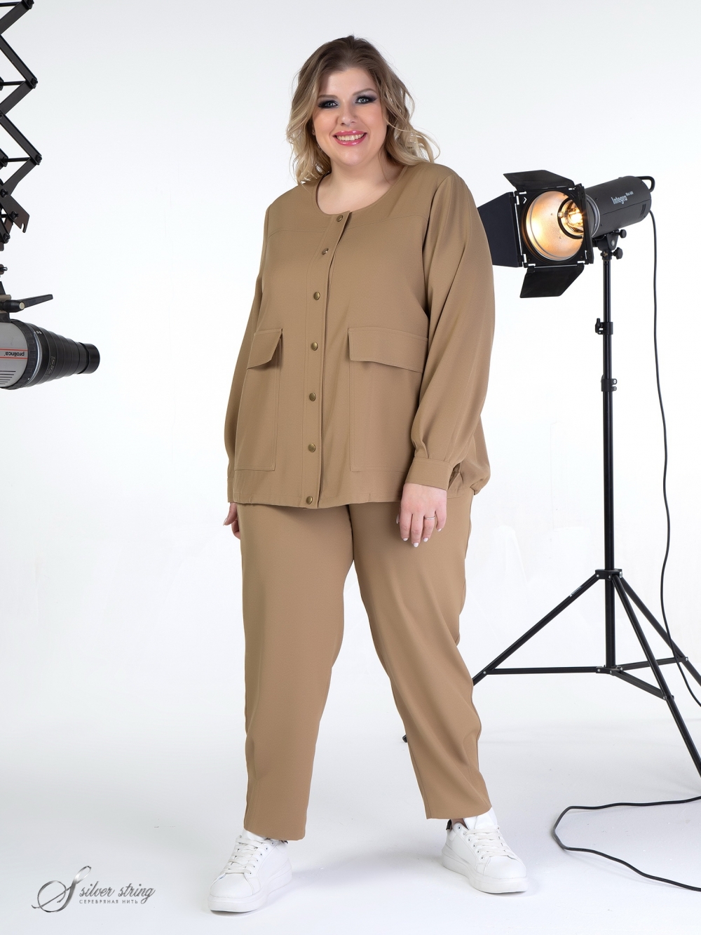 Стильный жакет-бомбер прямого силуэта выполнен из однотонной смесовой ткани с эластаном. Модель с округлой горловиной и застежкой на кнопки. На полочке и спинке обработаны подрезные кокетки. Рукав длинный, рубашечного кроя, с притачной манжетой. Обхват манжеты можно регулировать с помощью парных кнопок. На полочке расположены крупные накладные карманы с клапанами. Вход в карман расположен со стороны бокового шва. По низу изделия проложена тесьма-резинка, с помощью которой можно регулировать объем и степень прилегания модели. Удобный крой, и отличная посадка изделия помогут подчеркнуть Вашу индивидуальность и стиль.