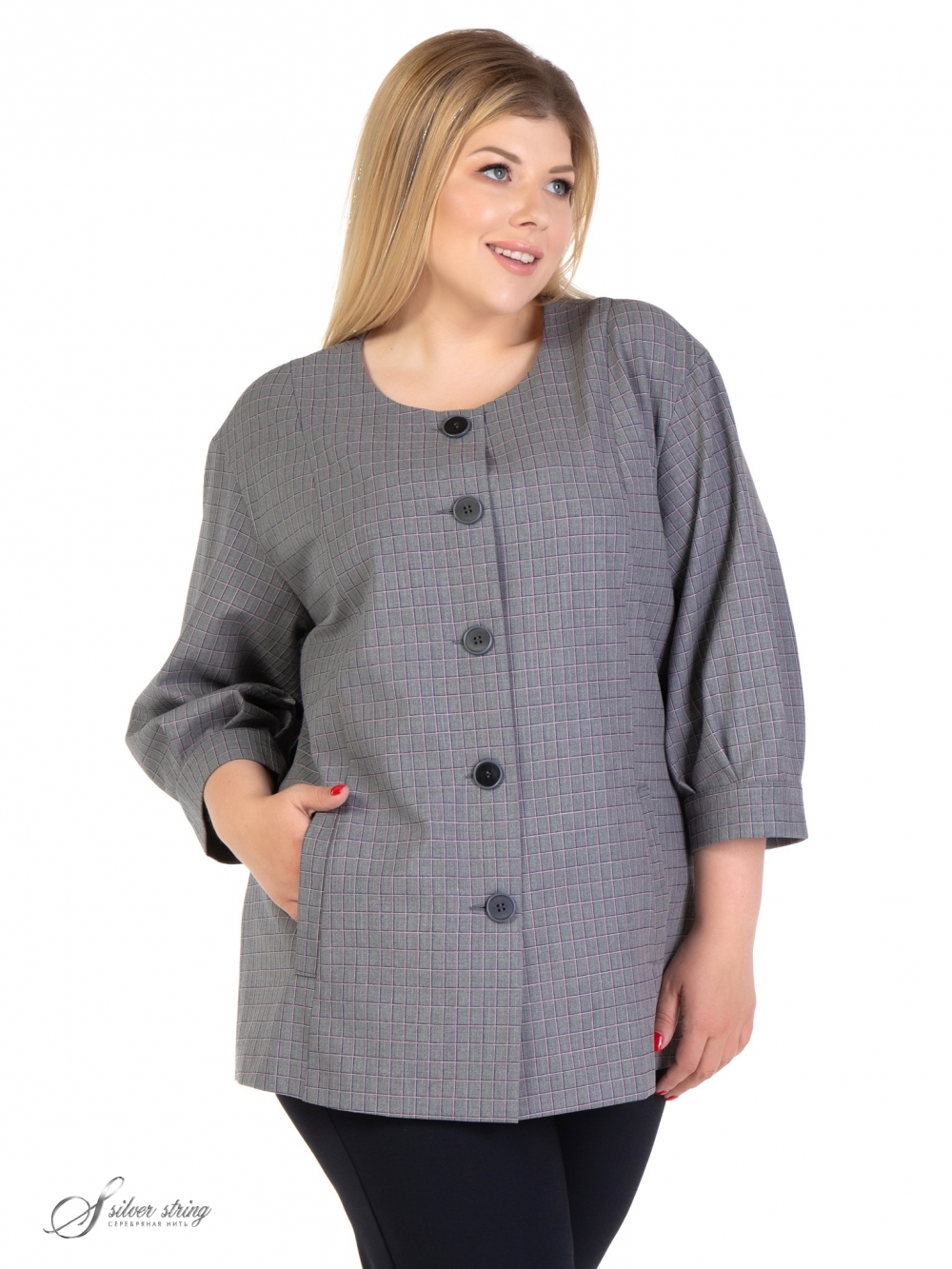 Качество товара на уровне Знака качества СССР. Придраться совершенно не к чему. Рисунок жакета клеточка. При застегивании , на карманах клеточки идеально совпадают, создавая целостность рисунка.