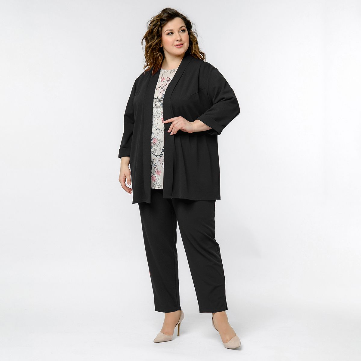 Жакет прямого силуэта. Рукав 3/4. По бортам и низу рукавов притачные отвороты.