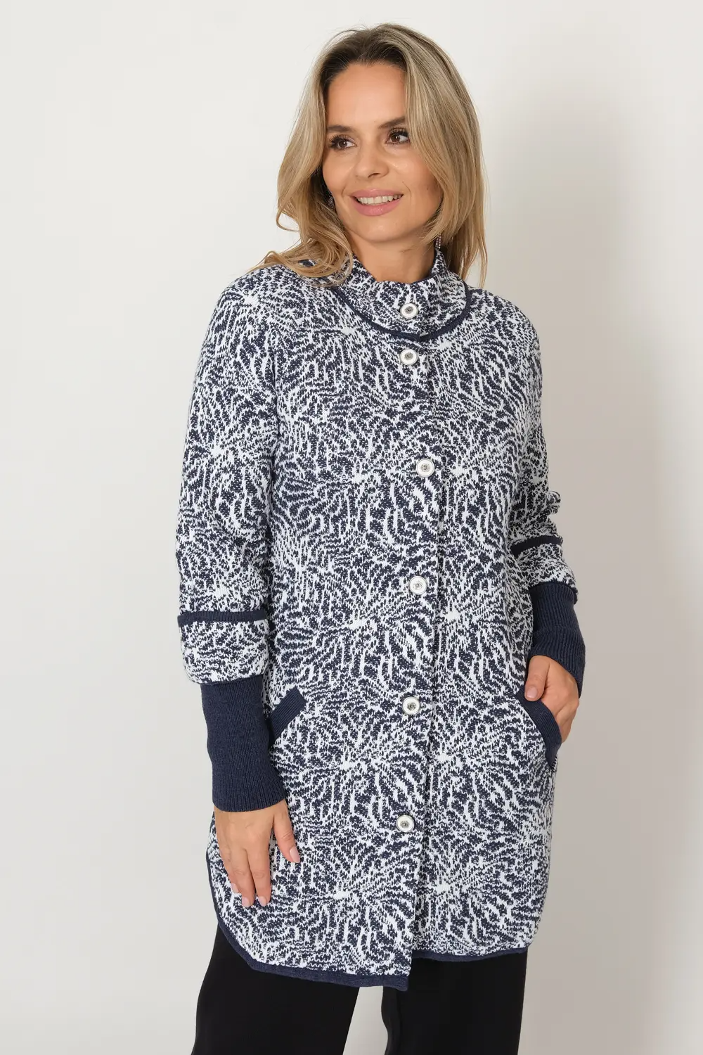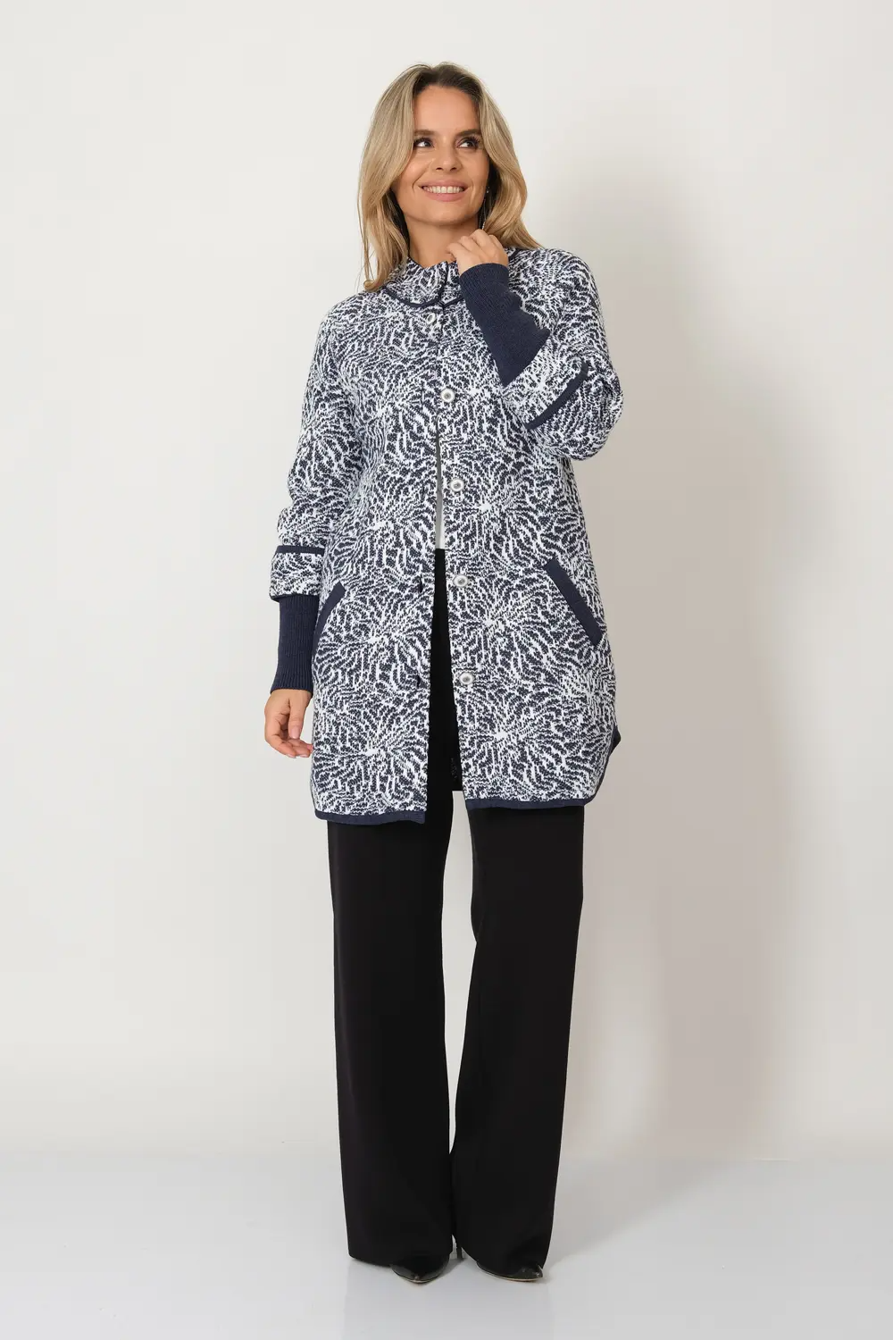 Элегантный вязаный жакет - несомненный хит сезона. Изумительно красивое полотно структурной вязки с мерцающей подсветкой по изнанке. Застежка на пуговицы, карманы в листочку, функциональные. Рукав - реглан длинный, на манжете. Манжет фиксированный. Кардиган выглядит женственно и элегантно. Он отлично сочетается с юбкой-карандашом и брюками.