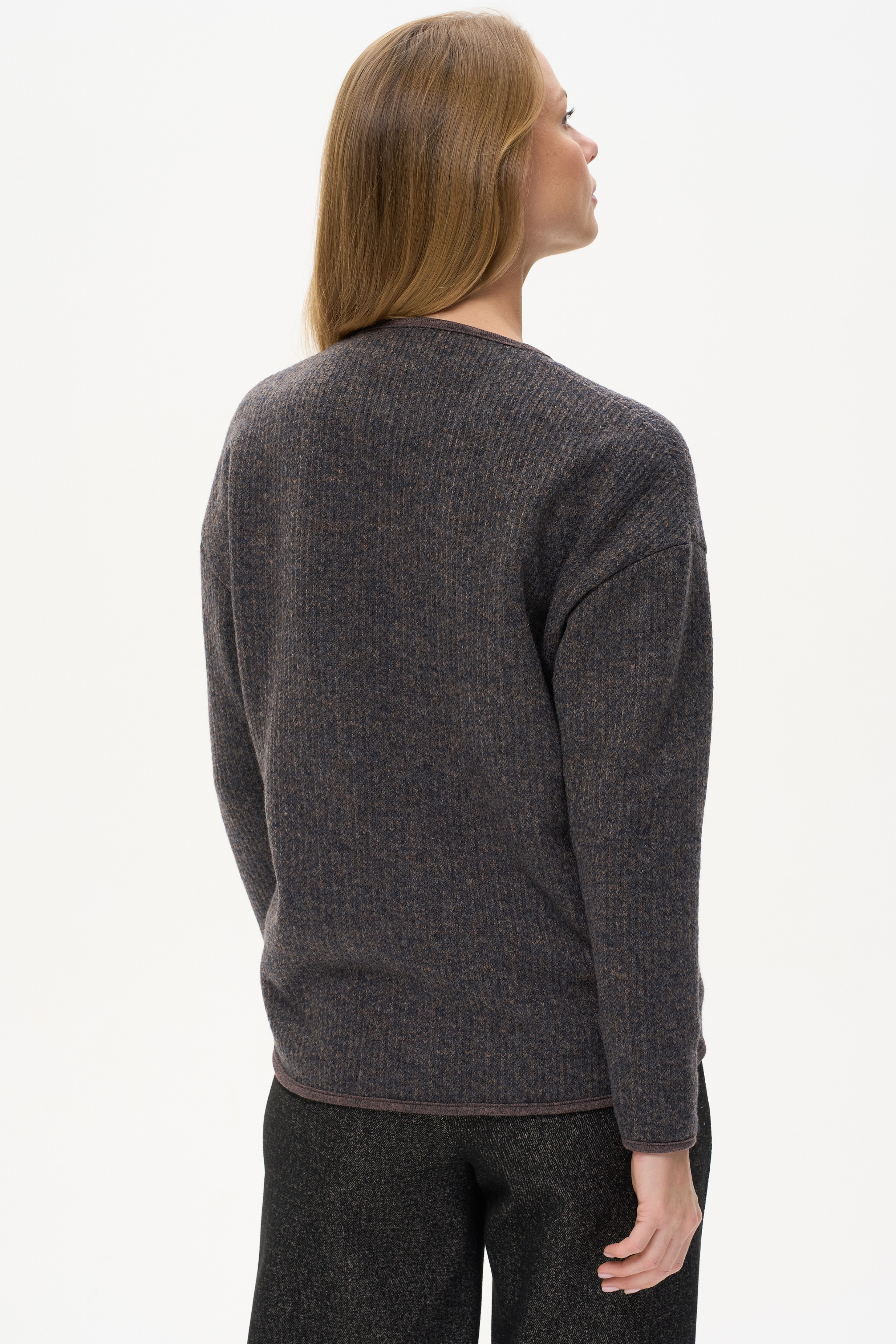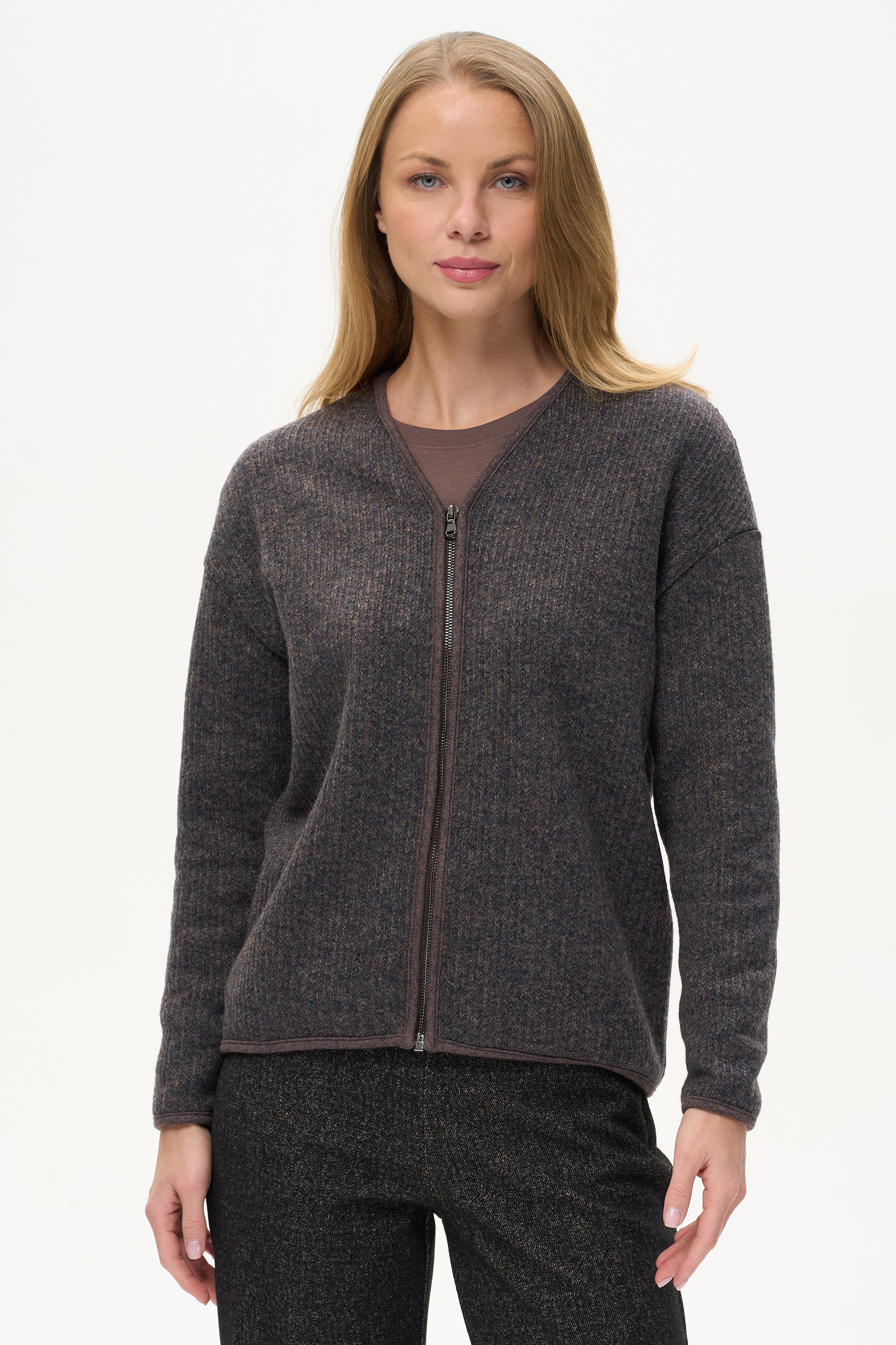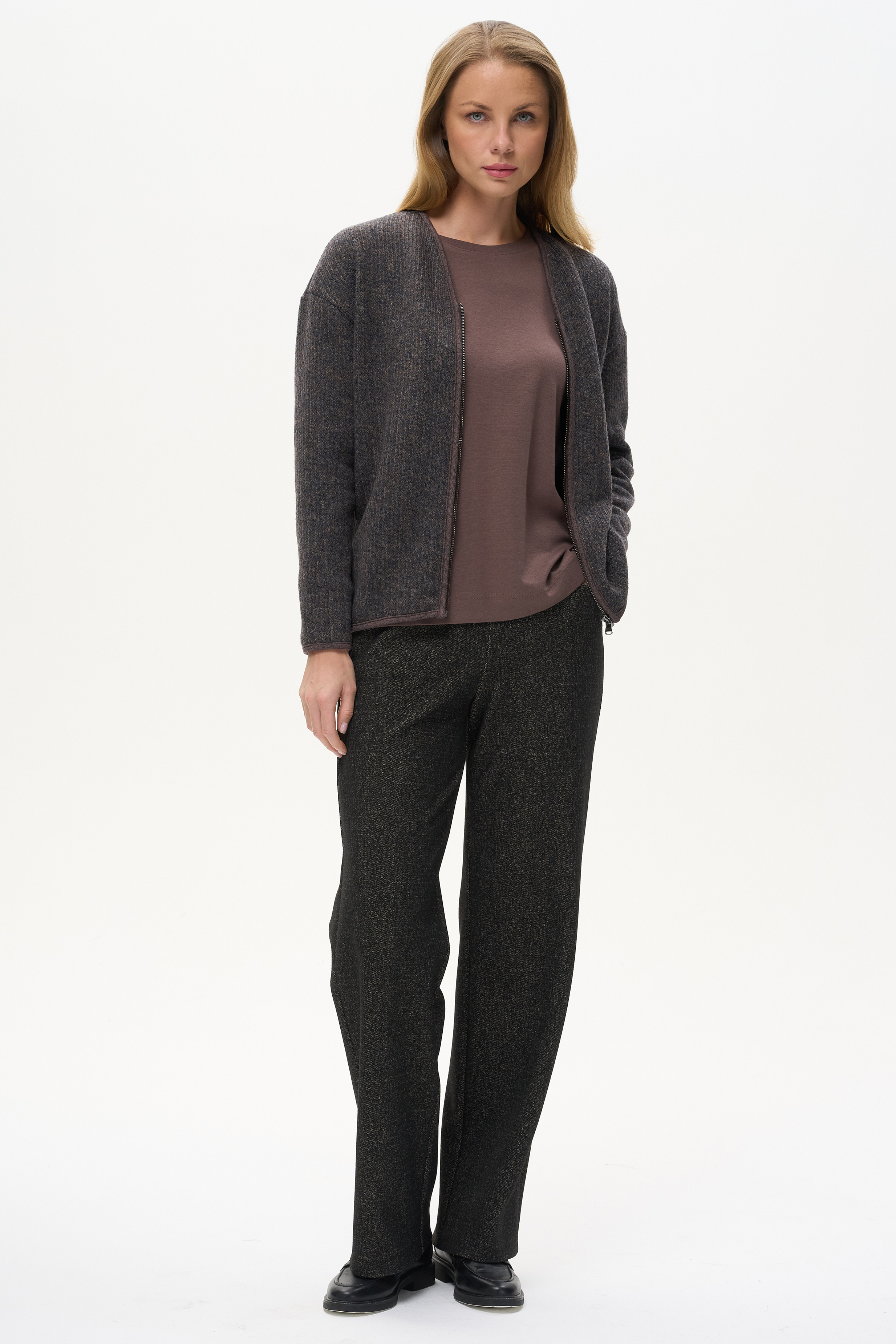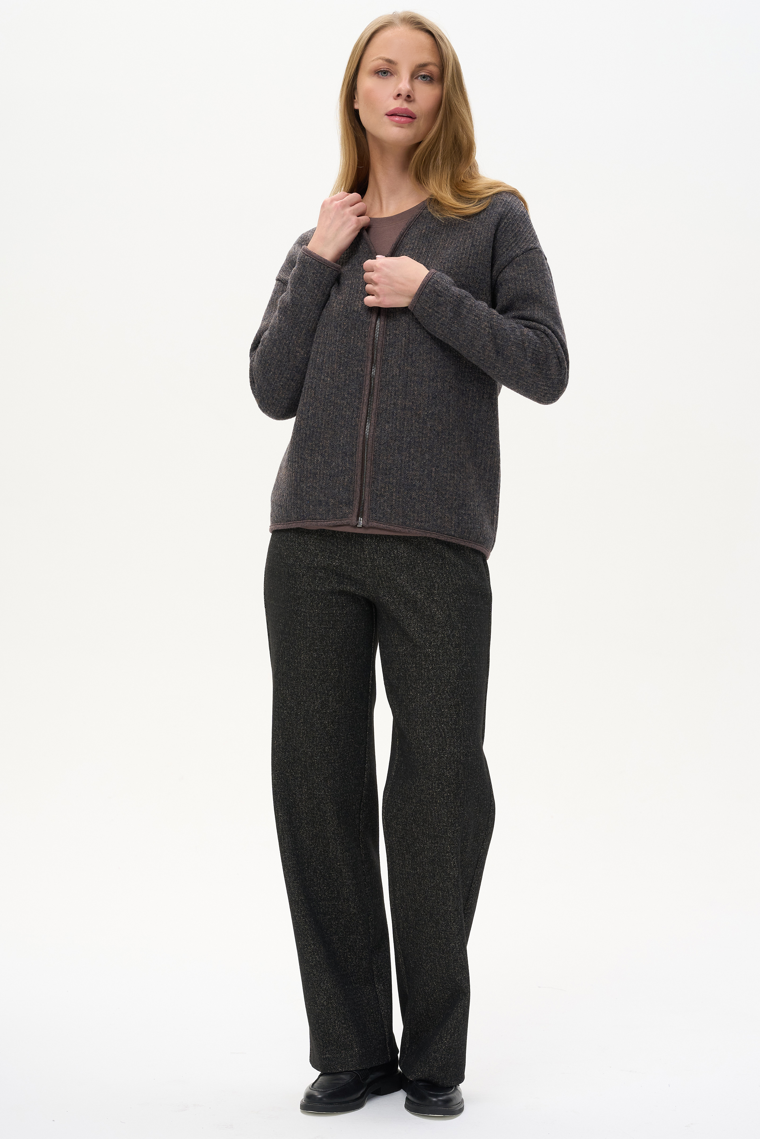 Теплый кардиган с застежкой молния. Выполнен из вязаного шерстяного трикотажного полотна. V - образный вырез горловины, втачные длинные рукава. Рост модели на фото 178 см.