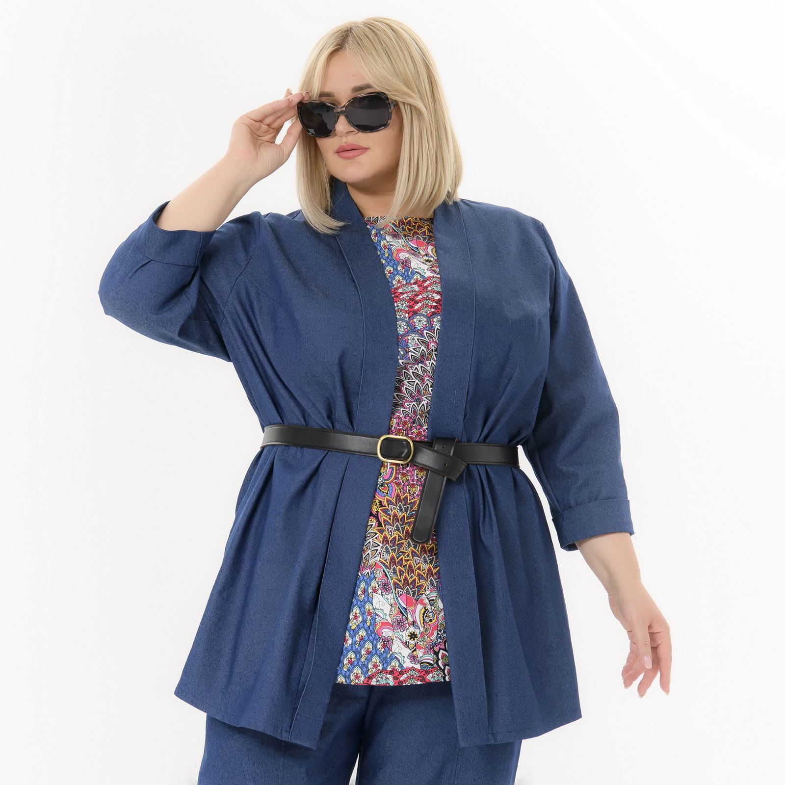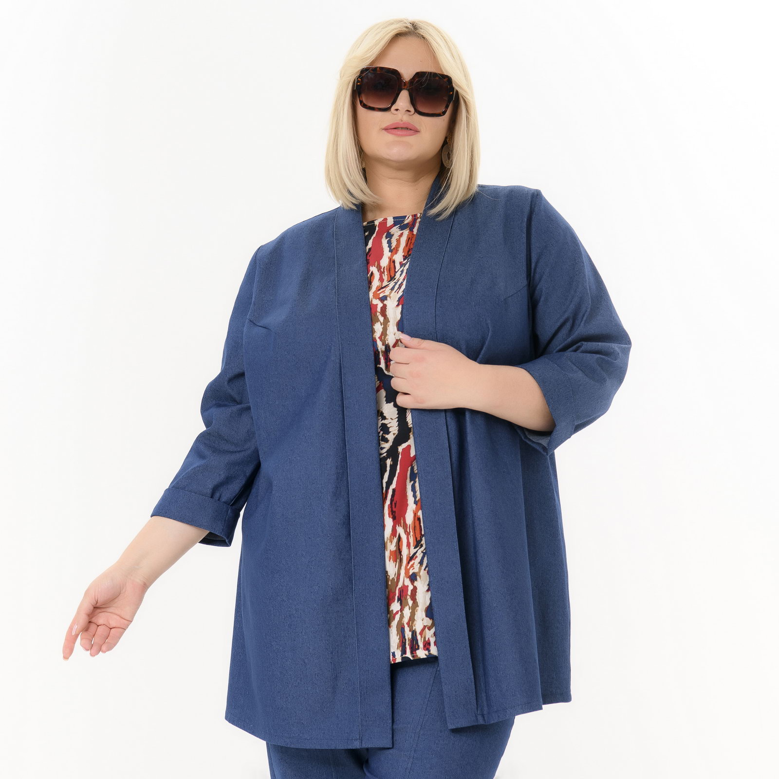 Жакет прямого силуэта из хлопковой ткани. Рукав 3/4. По бортам и низу рукавов притачные отвороты.