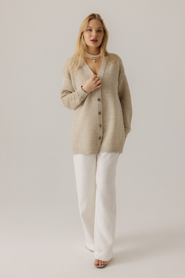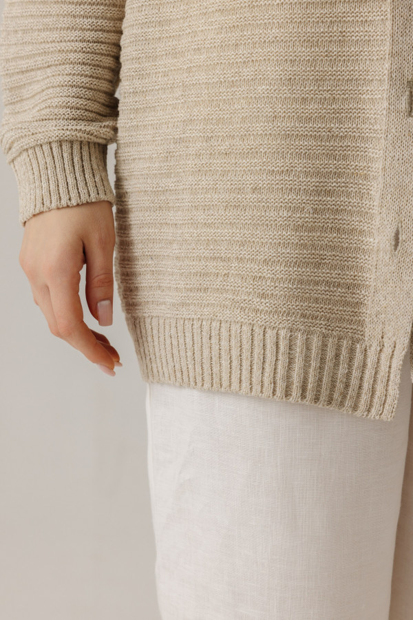 Стильный женский удлиненный жакет изо льна, силуэт прямой.