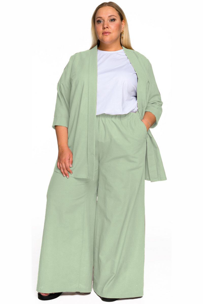 Жакет прямого силуэта из смесовой ткани, содержащей в составе лен и вискозу.. По бортам и низу рукавов притачные отвороты.