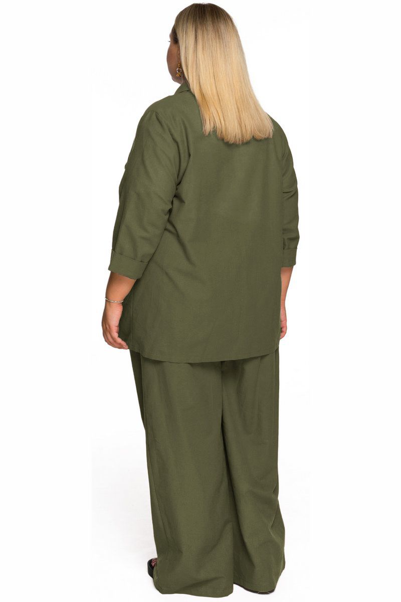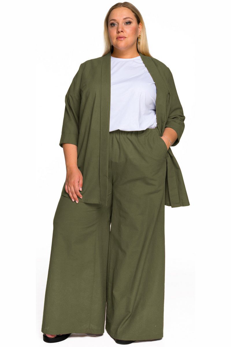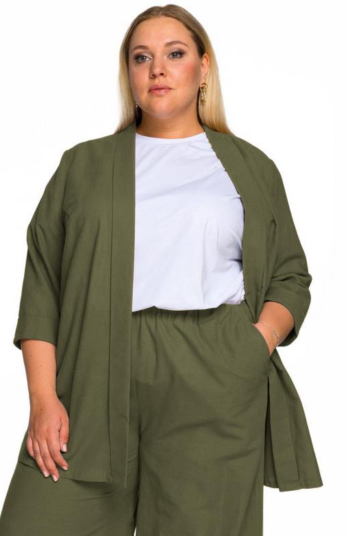 Жакет прямого силуэта из смесовой ткани, содержащей в составе лен и вискозу.. По бортам и низу рукавов притачные отвороты.