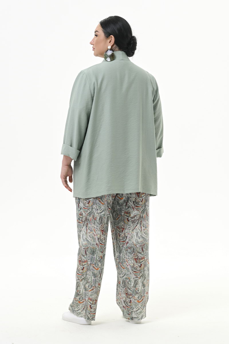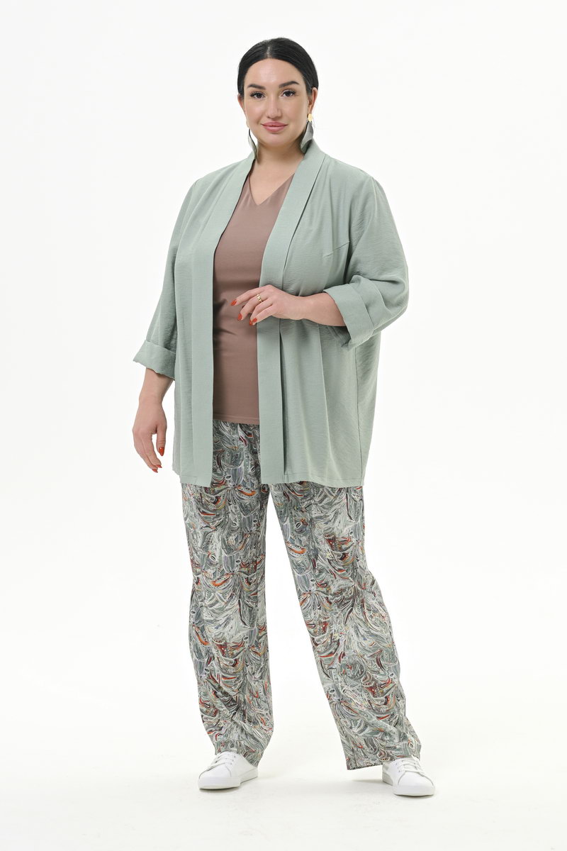 Жакет прямого силуэта из плотной, плательной вискозы. По бортам и низу рукавов притачные отвороты.