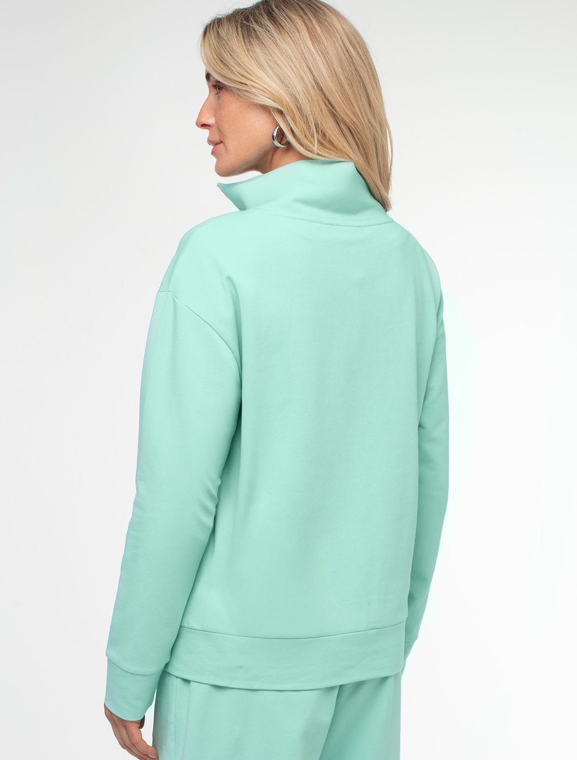 Жакет выполнен из футера двухнитки с эластаном. Модель без карманов с воротом стойка и застежкой на молнию серебристого цвета. Эластичный материал гарантирует комфорт и формоустойчивость. Сочетается в костюме с брюками D44.138, D44.139 D44.140 и шортами D48.008. Изделие дополнено металлическим логотипом бренда. мятный