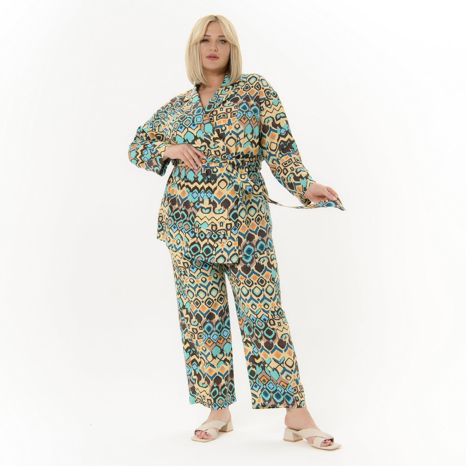 Рукав длинный, на основе спущенного. Жакет без застежки, завязывается на пояс.