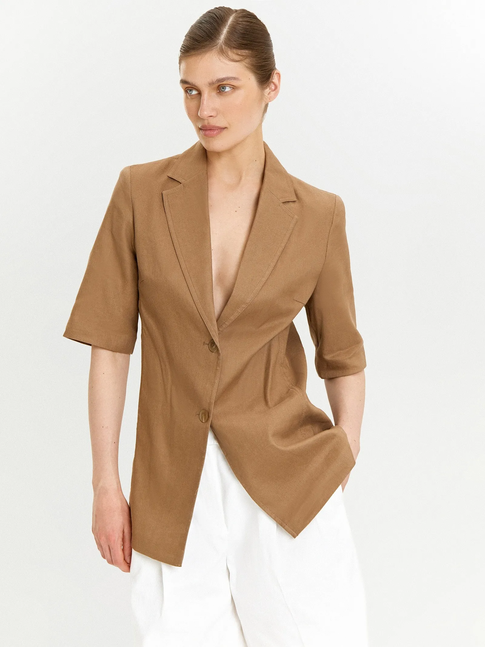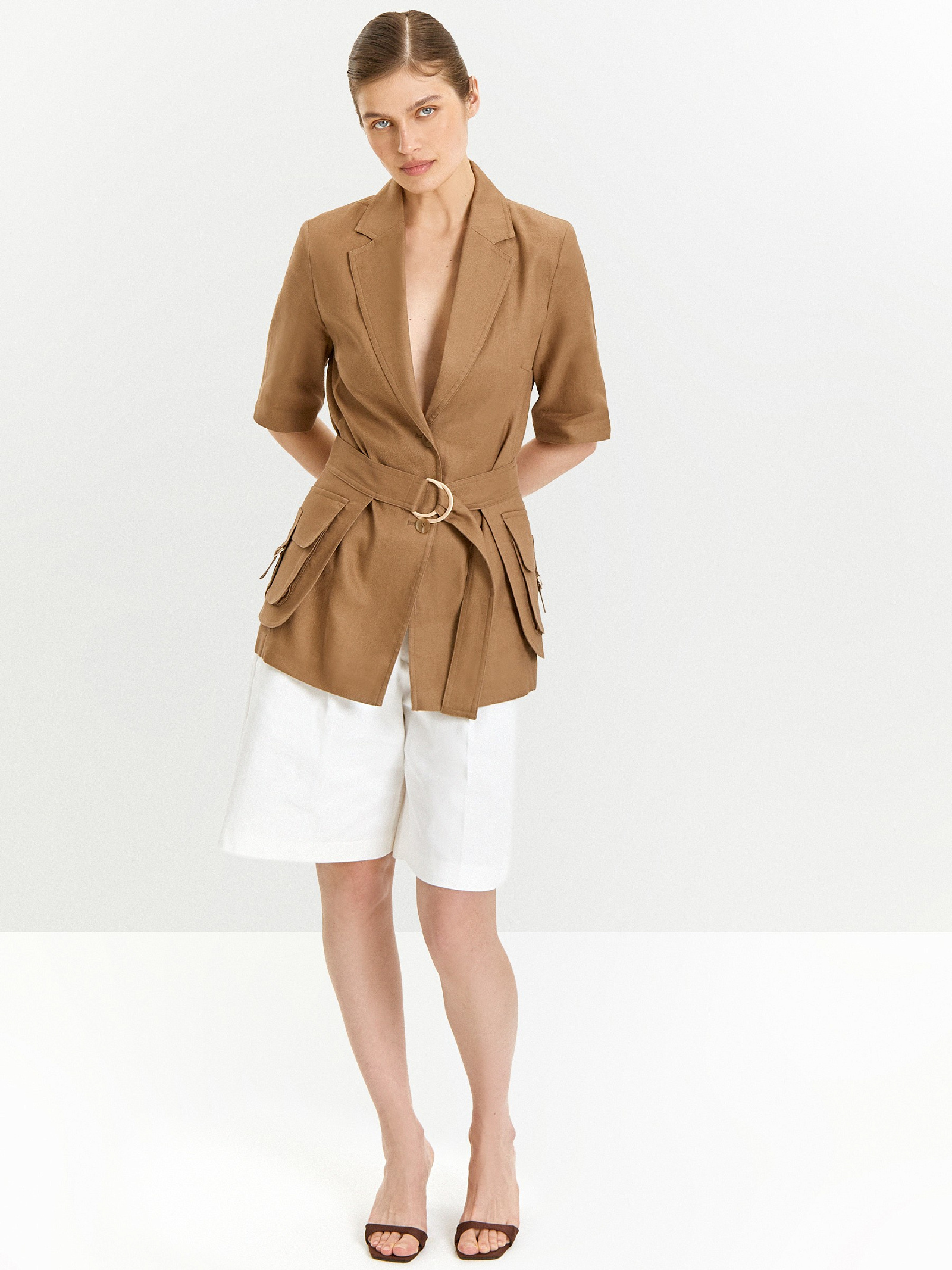 Жакет изо льна с поясом и накладными караманами, ML835/organica