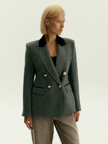 Жакет в стиле сафари из хлопка и льна. Однобортная удлинённая модель с рукавом длины 1/2 дополнена поясом с накладными карманами, что придаёт образу оригинальности. Пояс съемный, его можно также надевать на другие жакеты, жилеты и платья. Жакет сделан без подкладки.