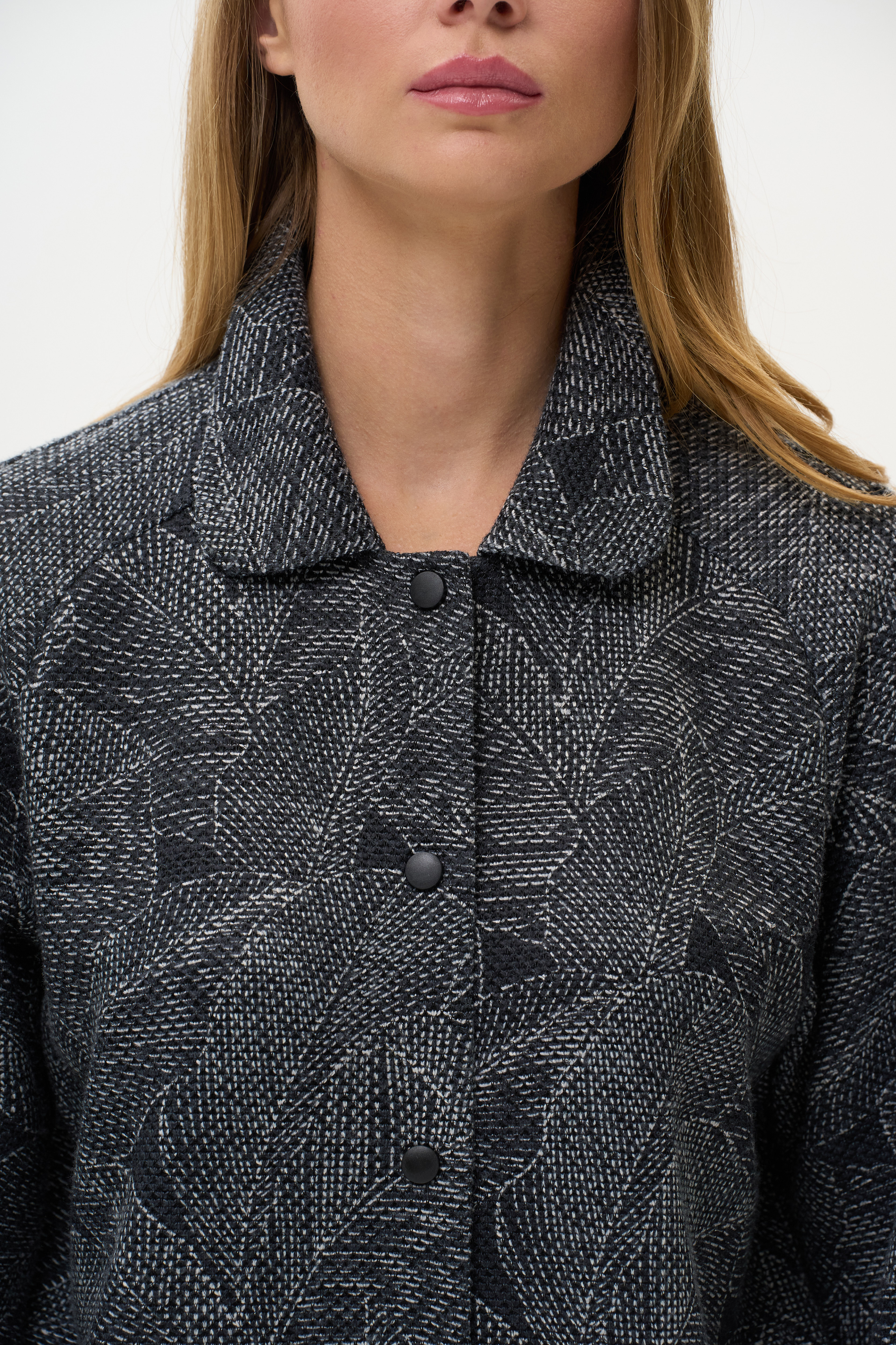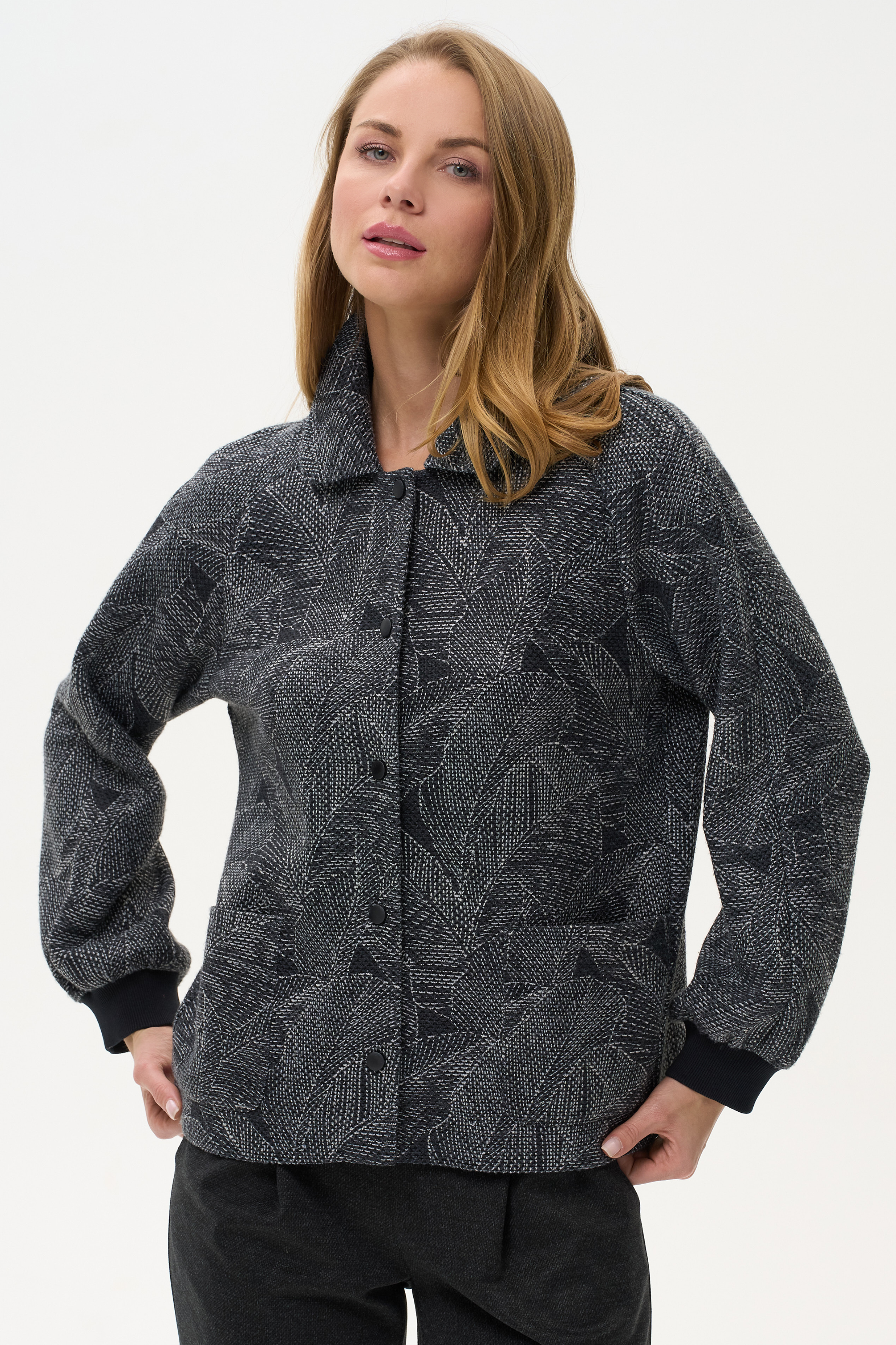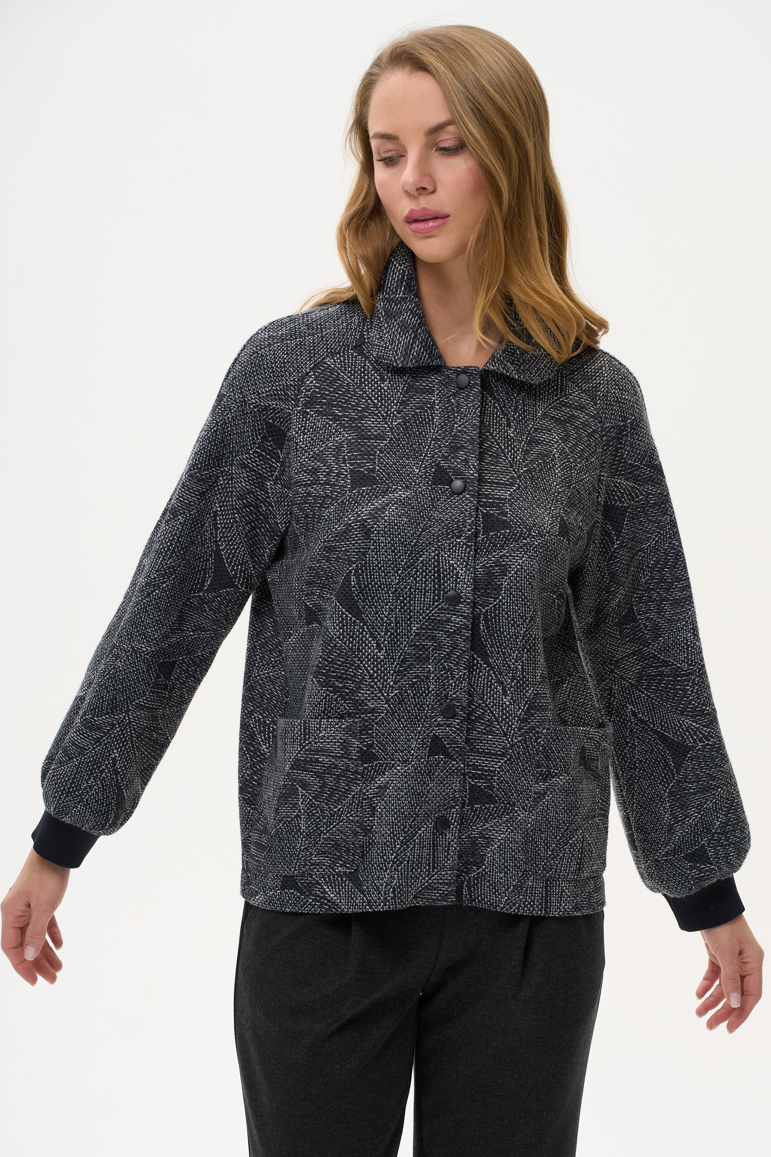 Жакет из фактурного жаккардового полотна. Рукав реглан, удобные карманы.